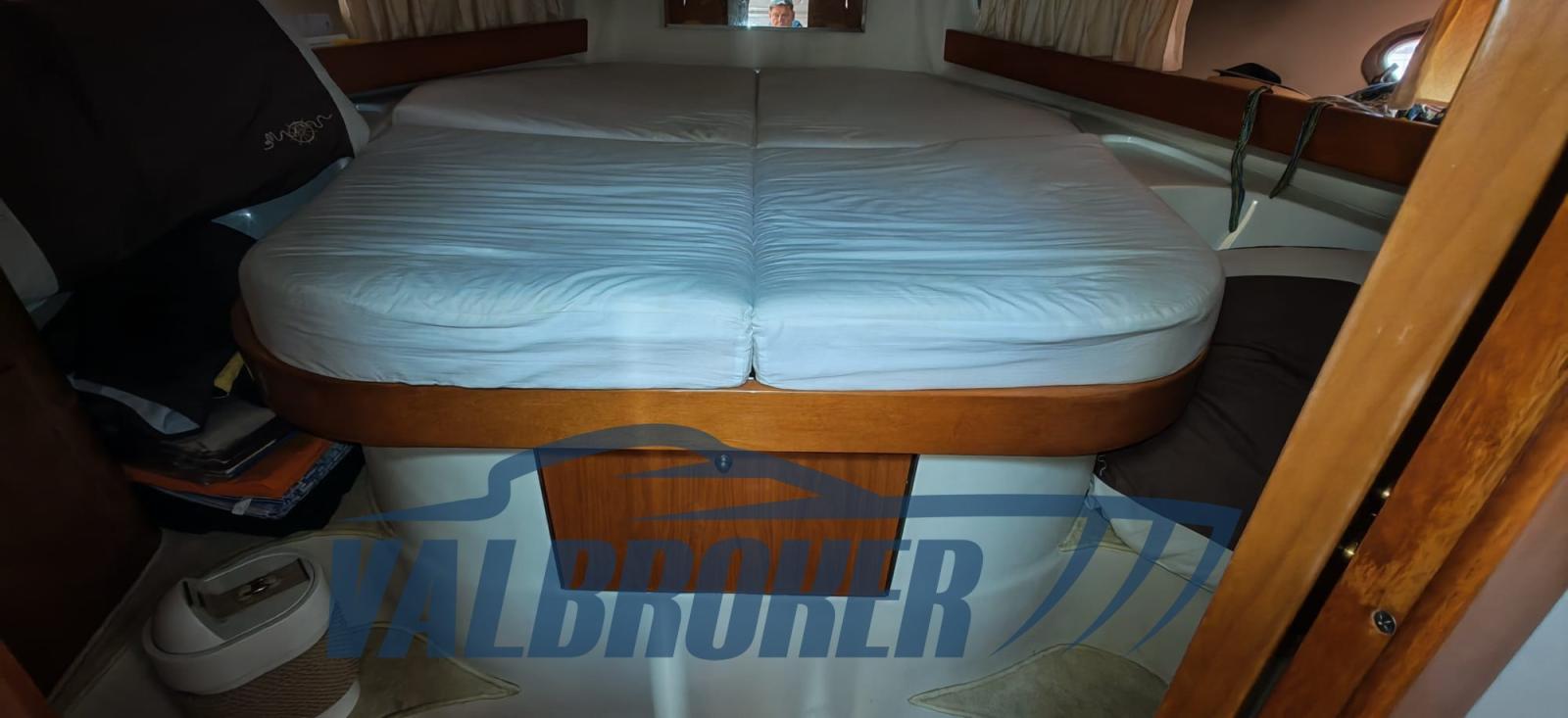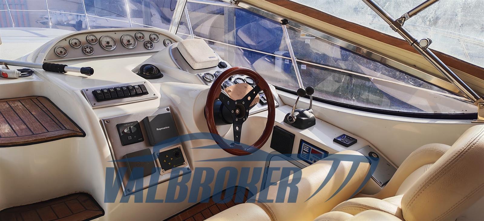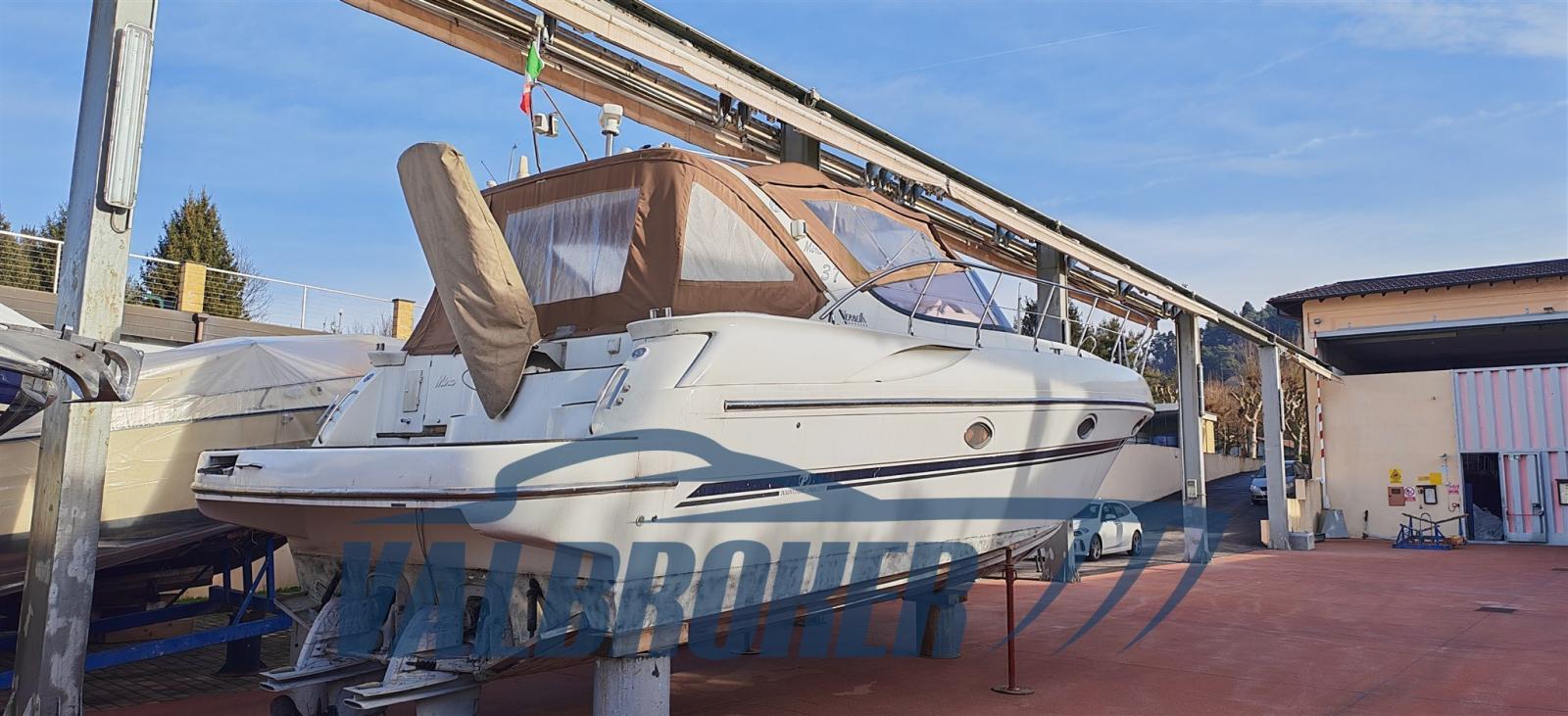 Open view of Lake Maggiore with two double cabins and two bathrooms. Powered by 2x Volvo Penta D4. FULL OPTIONAL: Hydraulic gangway, Mase generator, extended swim platform, Vetus bow thruster, remote control headlight, Quick chain counter, Raymarine autopilot, teak cockpit, Webasto heating. March 2026: preventive anti-osmosis treatment, removal of old antifouling layers, hull brought to zero with sandblasting, complete Stoppani-Lechler cycle, no. 8 coats of epoxy resin and antifouling application on hull and transmissions.