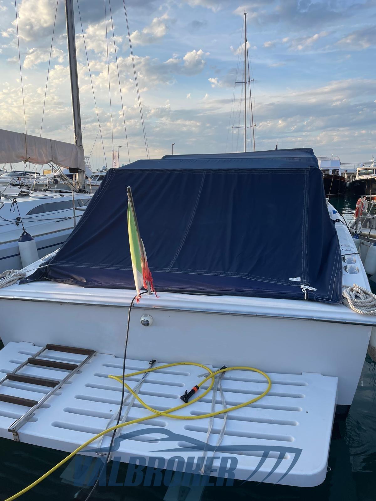 Offshore motorboat from the Italian shipyard re-engined 2 powerful Volvo Penta D6 350 common rail refurbished in 2024. Large spaces at the bow and stern and awning to create shade. Sports open for fast transfers. Speed 40 knots!!
