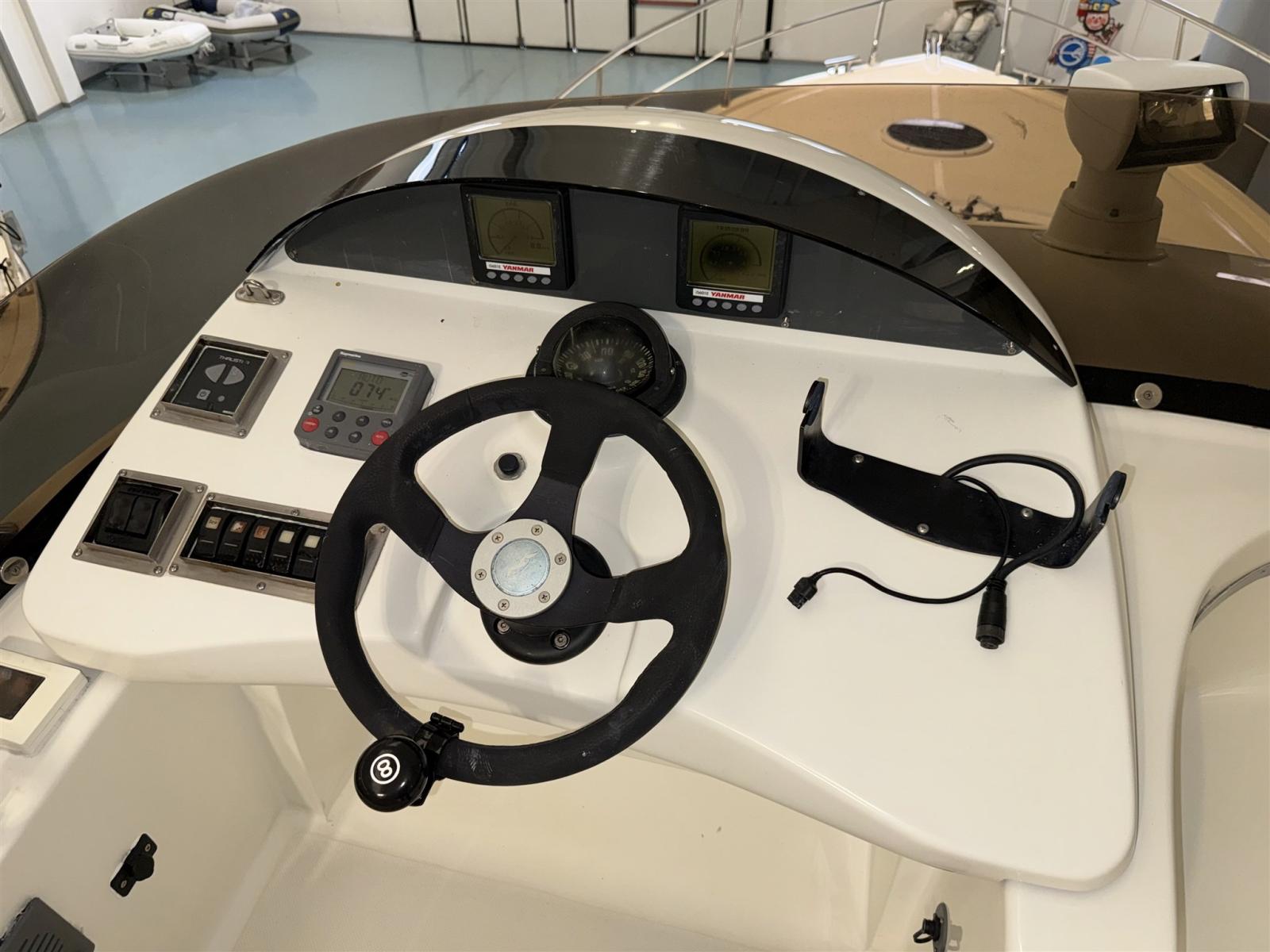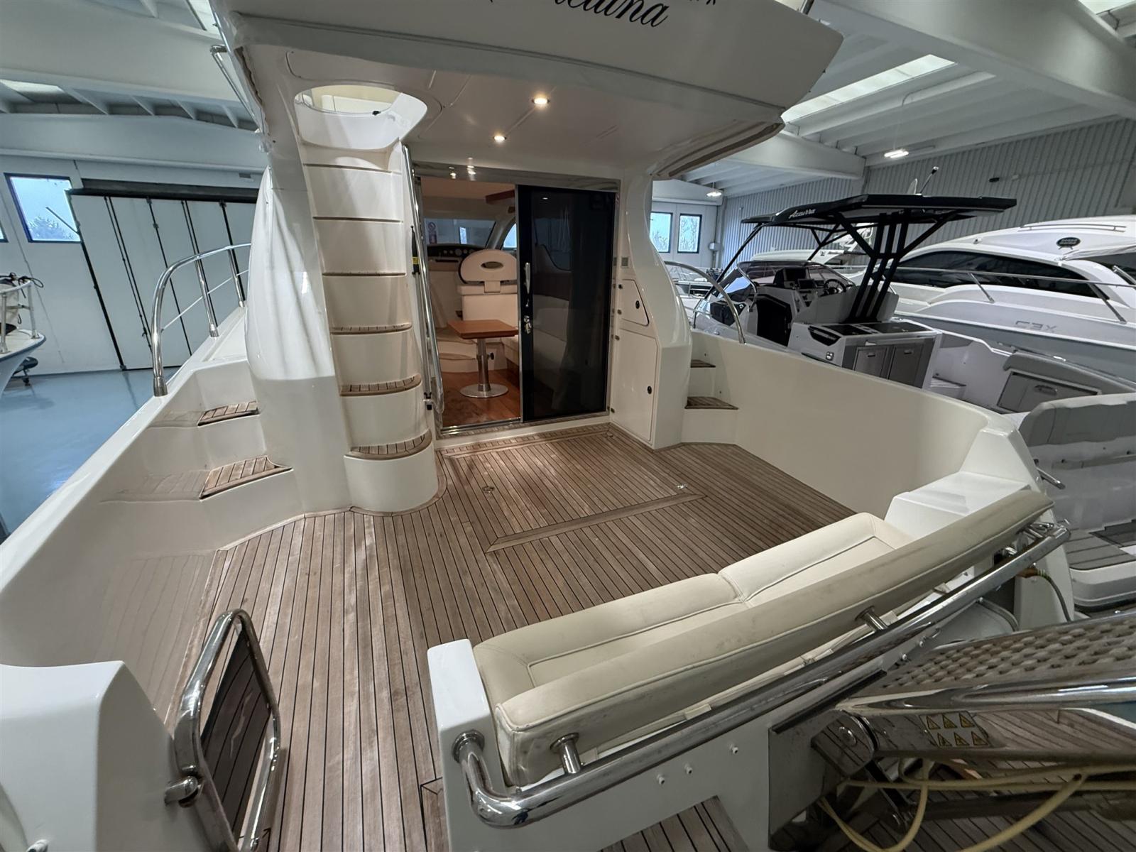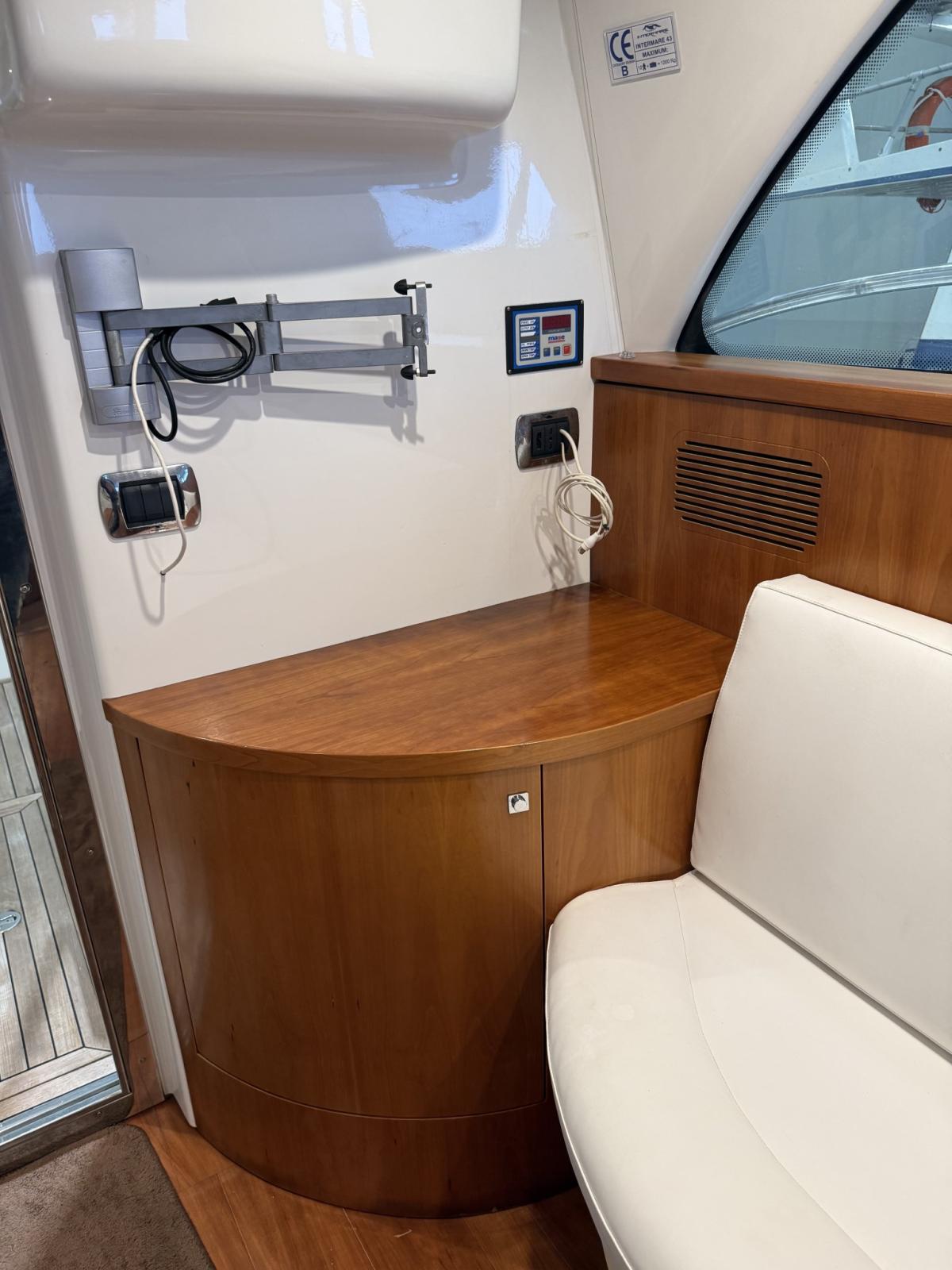 Fume/Gas Detector, Engine Alarm, Water pressure pump, Shore power cable, Deck Shower, 2 Hydraulic Flaps, Gangway (IDRAULICA), Platform, Automatic Bilge Pump, Teak Cockpit, Shorepower connector, Rollbar, Electric Windlass, swimming ladder, Horn.