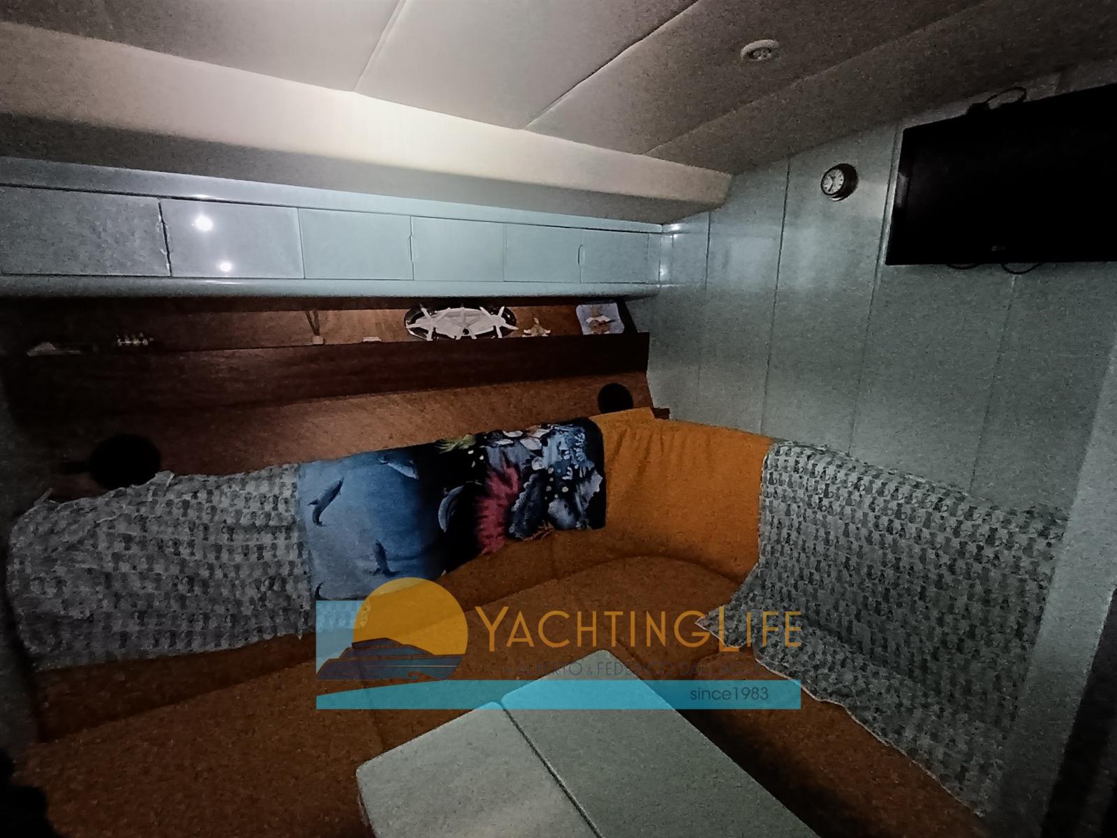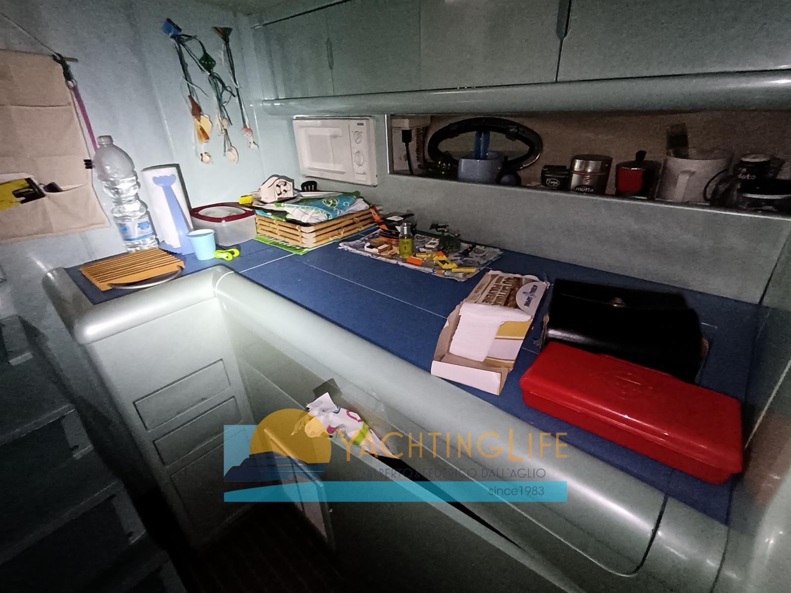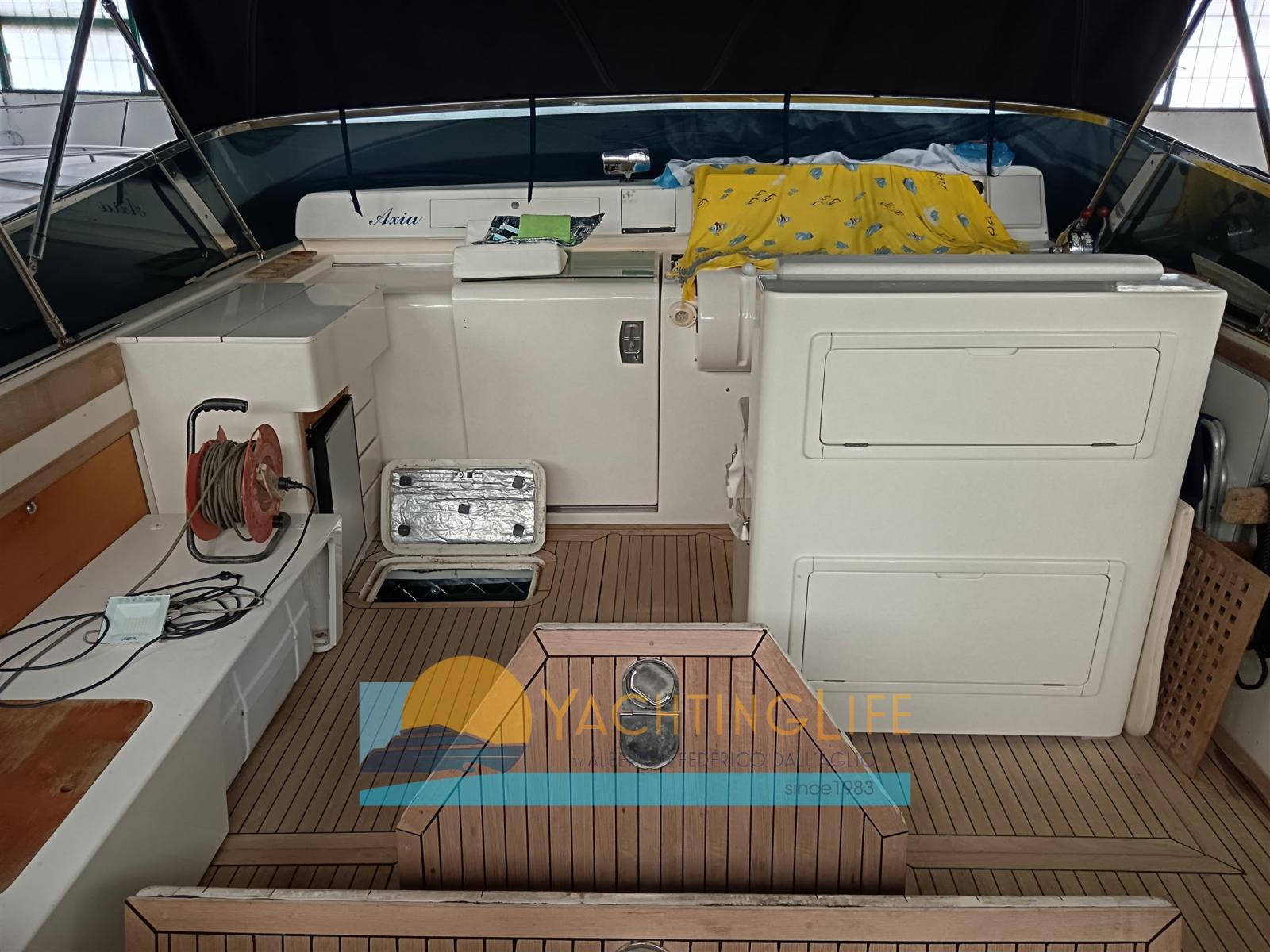 Engine Alarm, Bilge Alarm, Water pressure pump, Deck Shower, Hydraulic Flaps, Washbasin in the cockpit, Courtesy Lights, Gangway (idraulica), Platform, Automatic Bilge Pump, Teak Cockpit, Shorepower connector, Rollbar, Electric Windlass, swimming ladder, cockpit table, Horn.