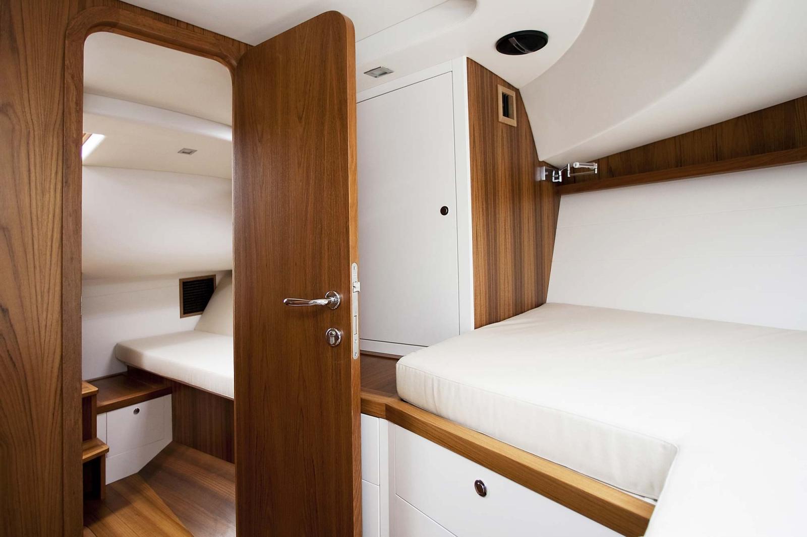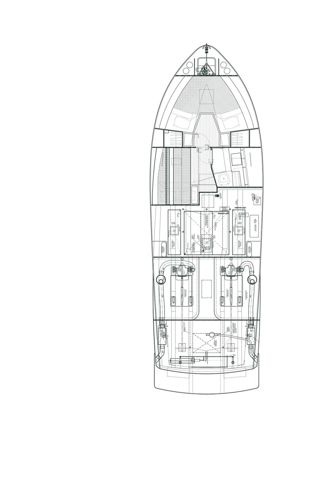 2 Engine Alarm, Bilge Alarm, Water pressure pump, 4 Batteries, Folding cleats, Teak Side Decks, Shore power cable, Deck Shower, Hydraulic Flaps, Hard top (elettrico), Fire Extinguishing System, Flaps Indicators, Anchor Chain Washdown, Courtesy Lights, Fenders, Platform (con piano di calpestio in teak), 4 Automatic Bilge Pump, Teak deck, Entry door, Teak Cockpit, Shorepower connector, Water harbor connector system, Voltage Rectifier, Rollbar, Electric Windlass, swimming ladder, Living Room Foldable Table, guard rails with gates, Horn.