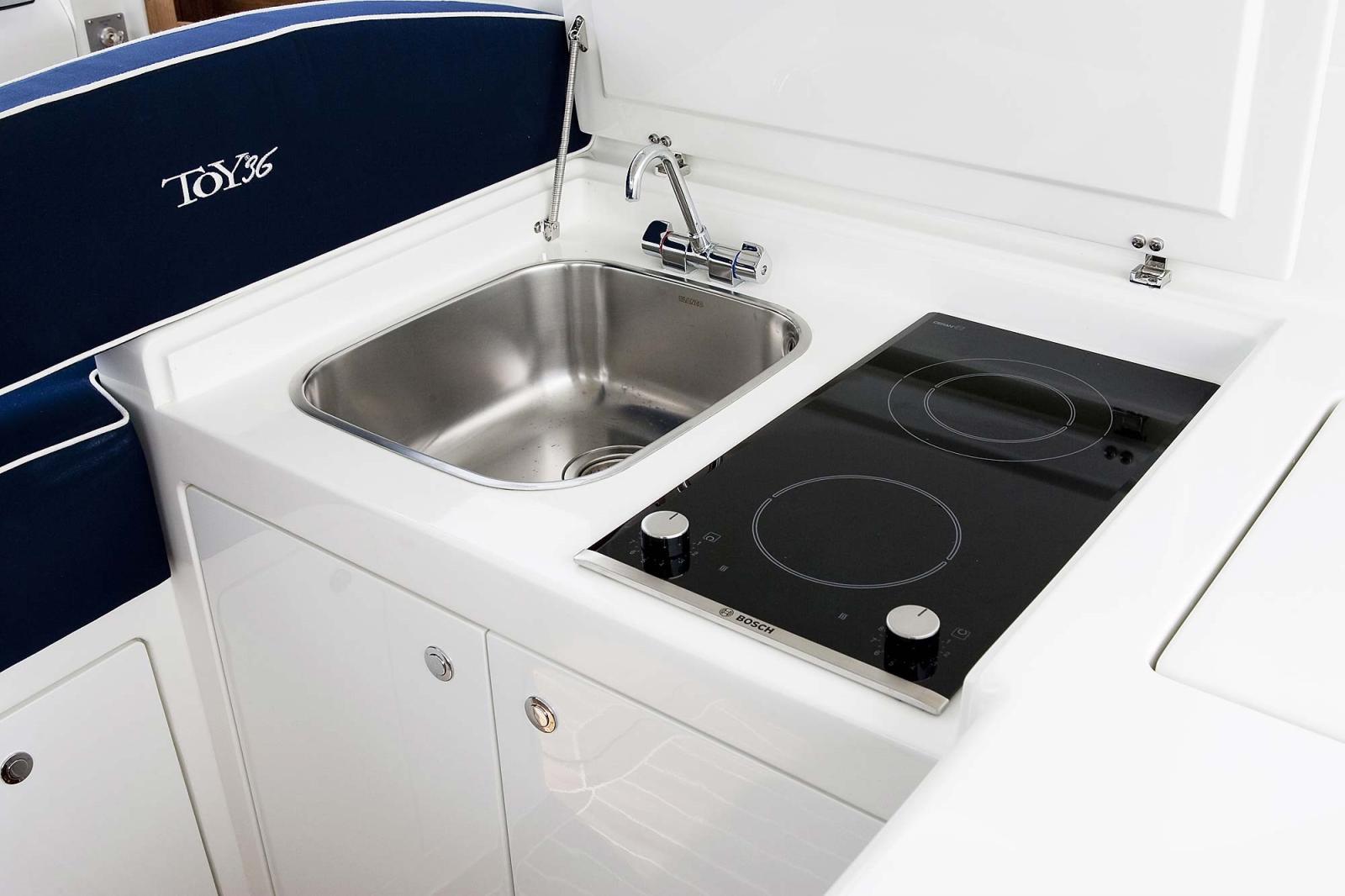 Freezer (a pozzetto), Galley, Deck Refrigerator, Icebox, Electric hot plate (a 2 fuochi).