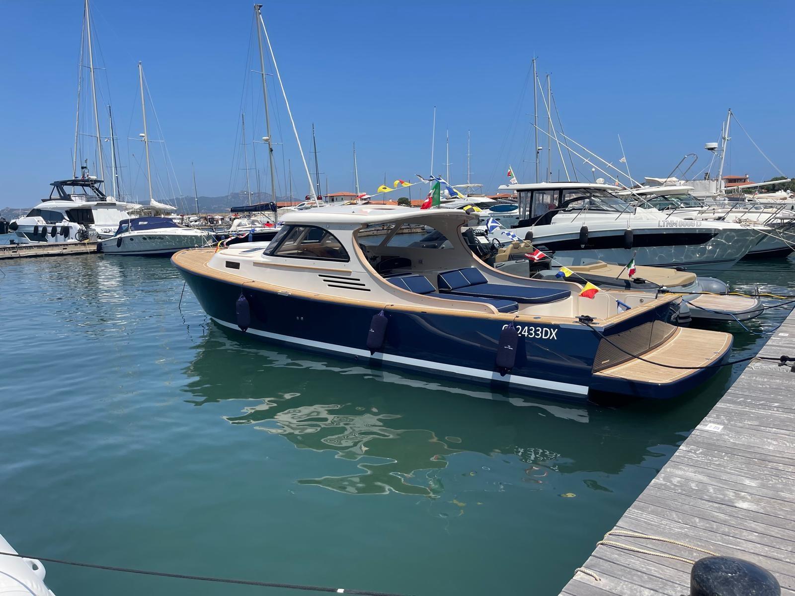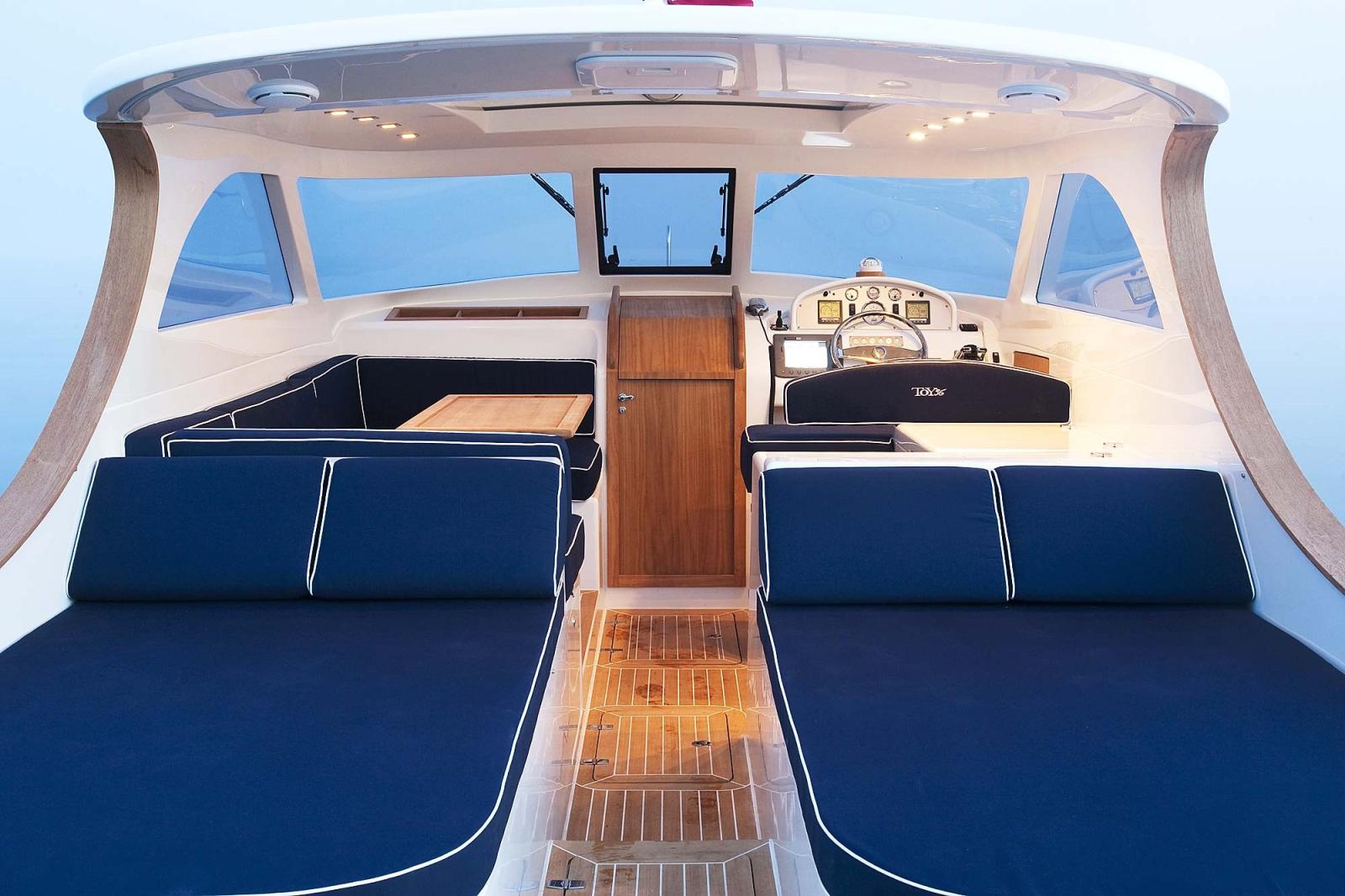 The Toy 36 by Toy Marine is an 11-meter (36-foot) lobster boat that reinterprets the classic American style, produced in Italy, in Savona, in a modern and elegant way, as a semi-custom "small masterpiece". Known for its deep V hull, it offers stability, comfort and timeless lines, ideal for day cruises. Inspired by the American Lobster Boats of the '30s, it combines Italian elegance, declined through high quality materials and sartorial attention to detail. It has a large cockpit, covered dinette with a sunroof, sundeck in the bow and a V-shaped master cabin, equipped with a bathroom with shower. Designed to be safe and easy to manoeuvre, it mounts easily accessible shaft line engines, under the triumphant aft sundecks. The Toy 36 is rightly considered a progenitor of the lobster genre in Italy, appreciated for its timeless classic line.