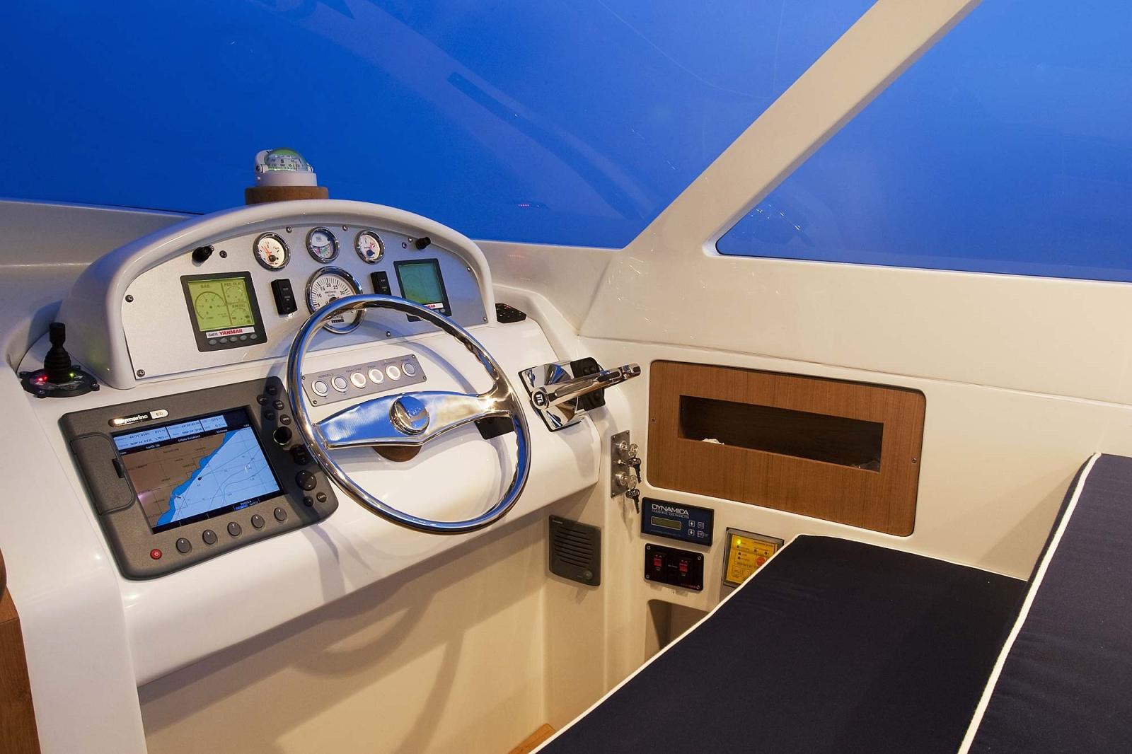 Compass (Ritchie), Electronic engine control, On-Board Computer, 2 Display (Yanmar), Joystick, Plotter with GPS antenna, Control panel, VHF Radio (Raymarine E240).