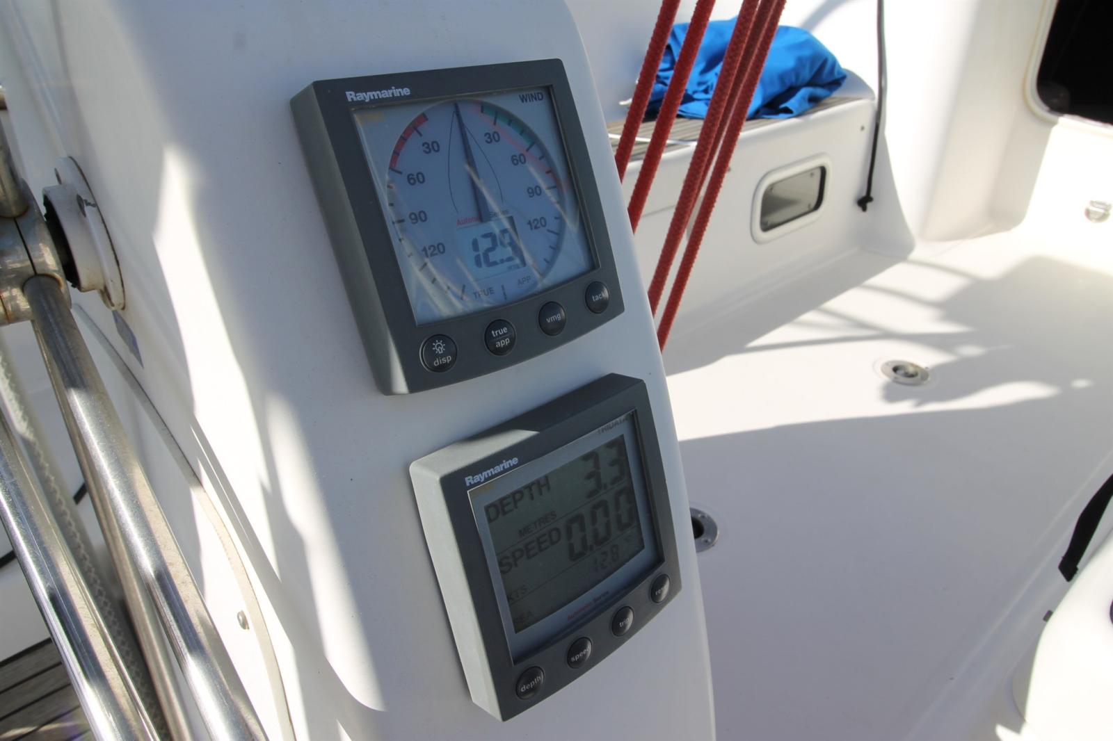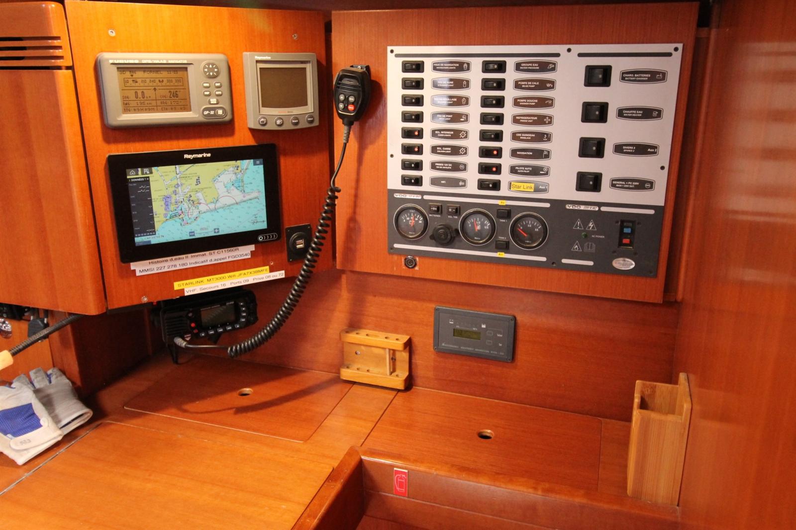 AIS (GARMIN CLASS B (Emet/recept)), Rudder angle indicator, 2 Odometer (Raymarine ST60), DSC vhf (Standard Horizon), GPS (Axiom 9 (2021)), Consumption monitor (MASTERVOLT), Autopilot (Raymarine ST6001+ vérin electrique T2), VHF Radio (portable), 2 Sonar (Raymarine ST60), 2 Wind Station (Raymarine ST60).