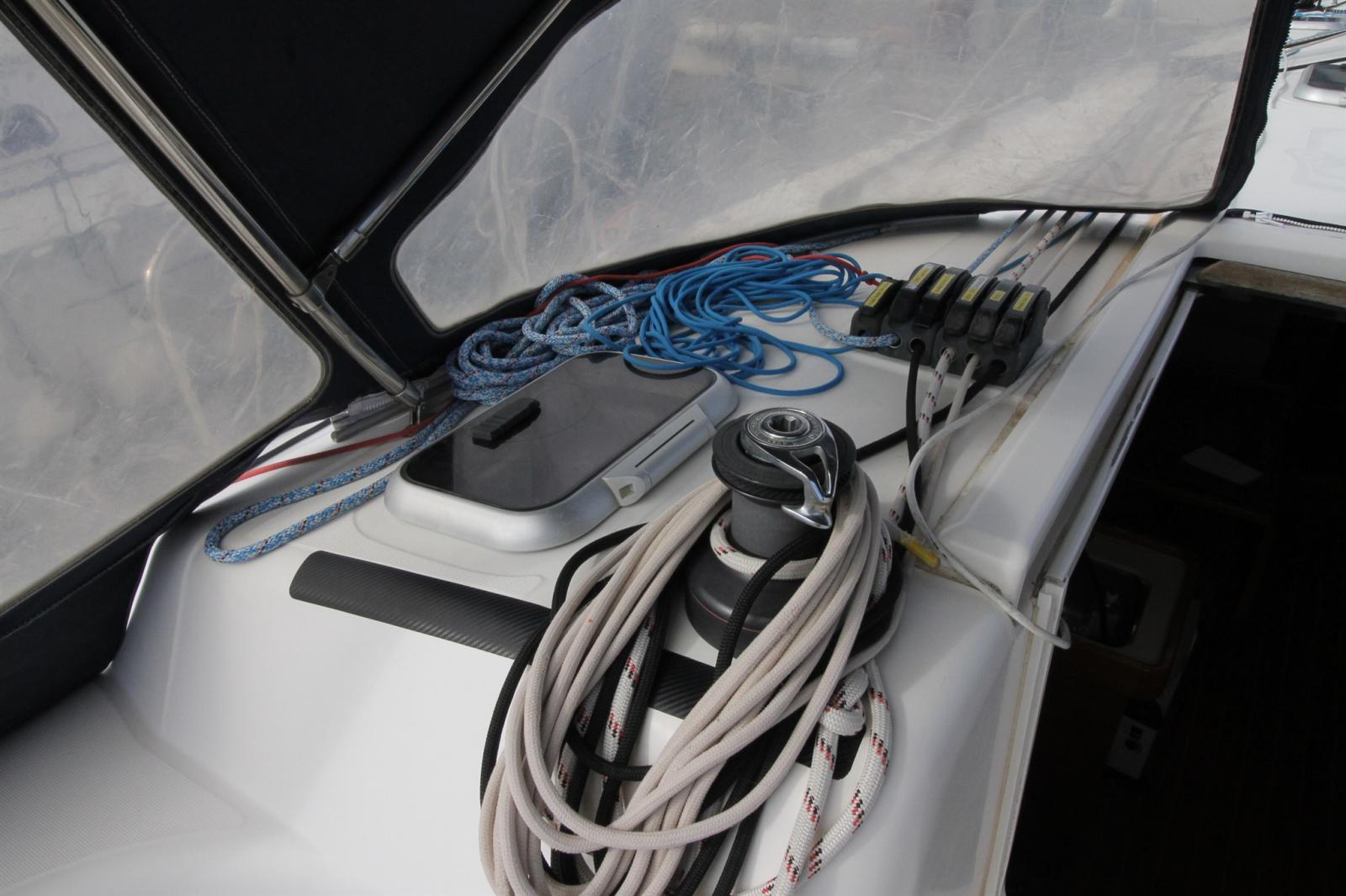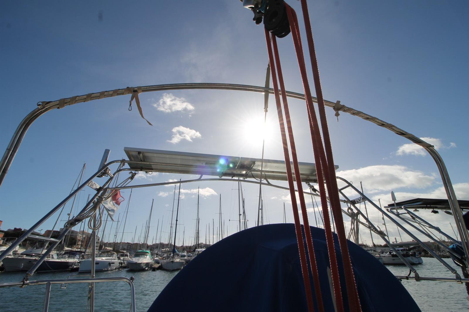 Anchor (charrue + 50m de chaine de 10), Water pressure pump, 2 Batteries (140ah de 2025 + 1X100ah pour moteur de 2026), Battery charger (30ah), Deck Shower, Tender Crane (sur portique MPI INOX), Battery Monitor (MASTERVOLT), 2 Solar panels (x100W), Manual Bilge Pump, Shorepower connector, Electric Windlass, swimming ladder, Outboard Engine Support Bracket, cockpit table (escamotable en bois).