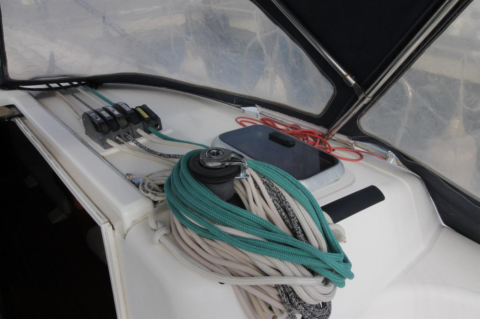 Bimini (avec rallonge), Stern Cushions ((Coussins de cockpit)), Mattresses (de la cabine avant modifié (160 x 200)), Boat cover.