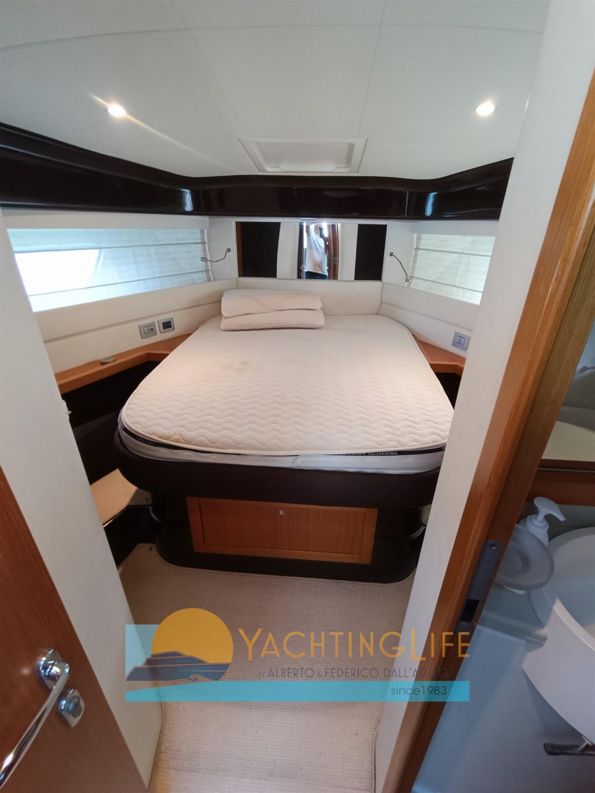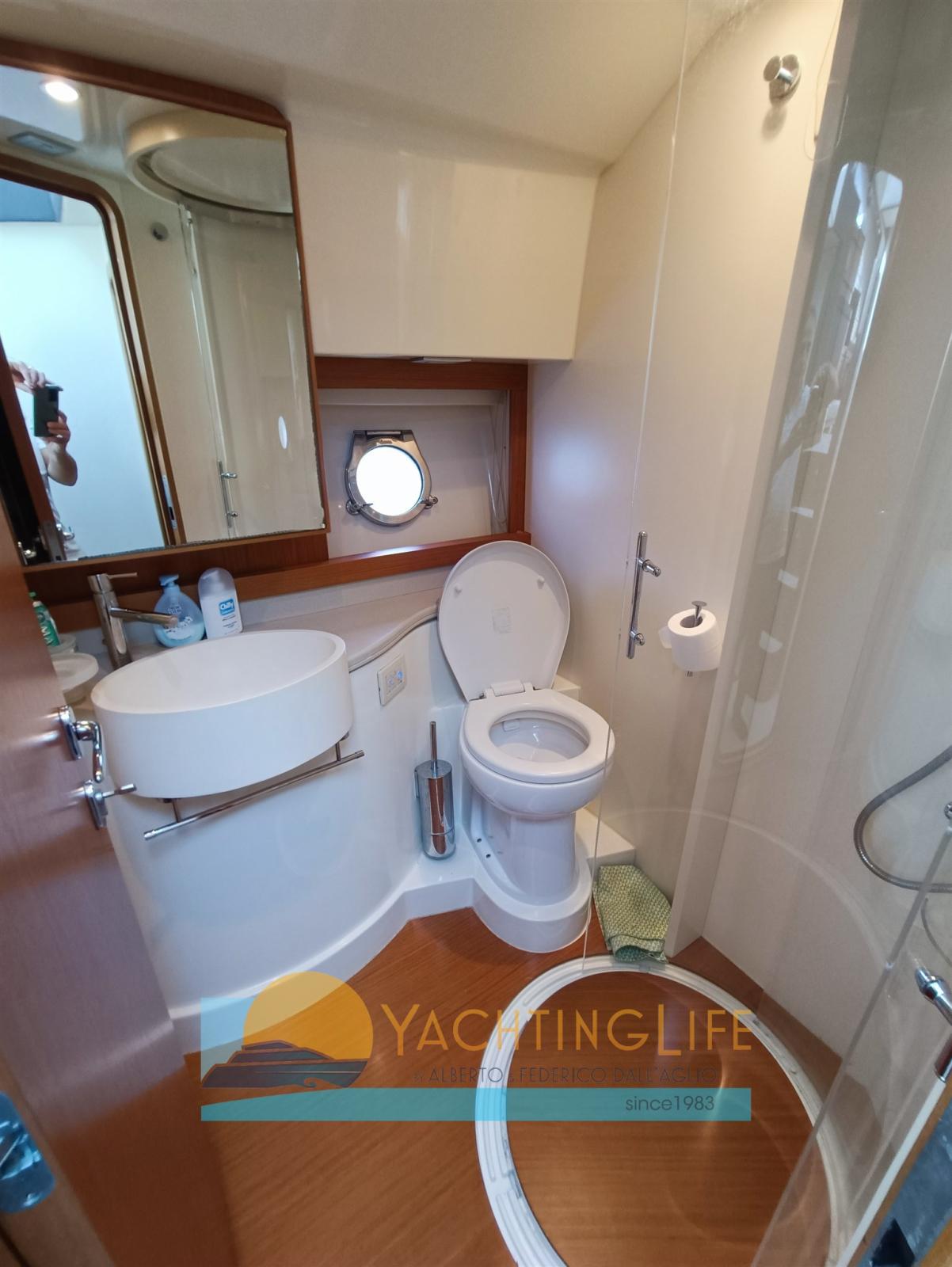 Engine Alarm, Bilge Alarm, Water pressure pump, Deck Shower, Twin Steering, Hydraulic Flaps, Fire Extinguishing System, Flaps Indicators, Courtesy Lights, Gangway (idraulica), Platform, Automatic Bilge Pump, Entry door, Teak Cockpit, Shorepower connector, Electric Windlass, swimming ladder, cockpit table, Horn, Stern Winches.