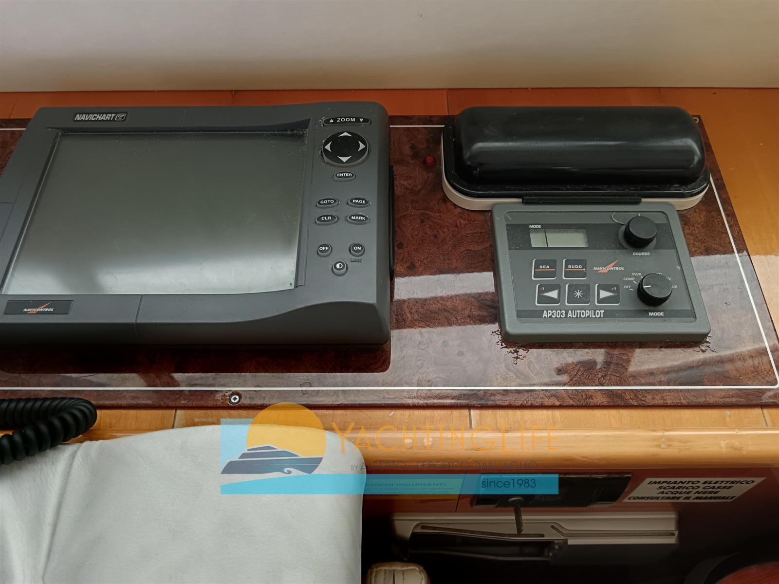 Rudder angle indicator, Radar Antenna, 2 GPS (Sul fly nuovo), VHF Radio (2025 + Portatile 2024).