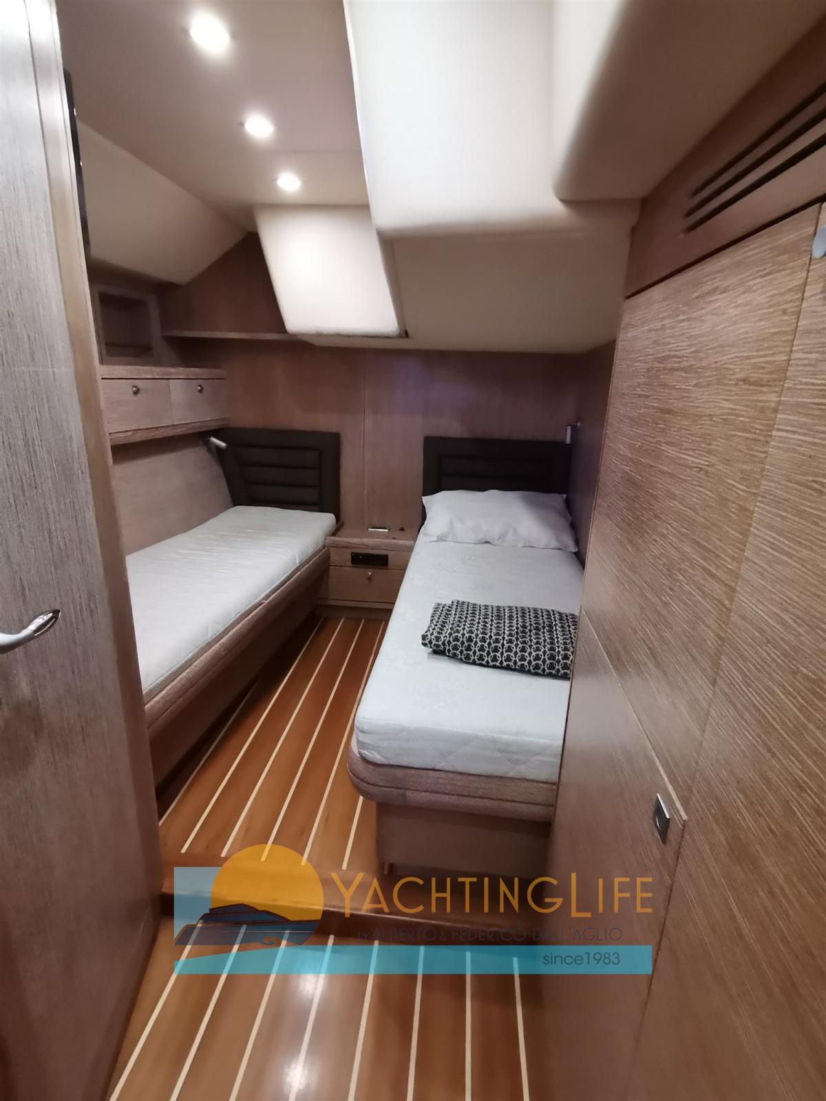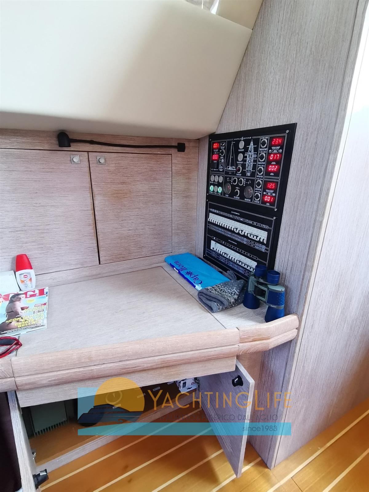 REFITTING 2024: Deck repainting, glass sealing, interior roofing, hull polishing, electric winches overhauled, new internal sofas, new external cushions and awnings, satellite antenna replaced, sails regenerated, all new sheets and lines, disembarkation and generator overhaul, engine cutting, all new seacocks, new bushings and seals, cockpit table makeover - Billable boat - 4 cabins plus crew version - Approved for charter - Carbon North Sail sails - Aluminium mast - Retractable TV in the saloon - Oversized galley - Stern garage for tender - Blue hull to be repainted