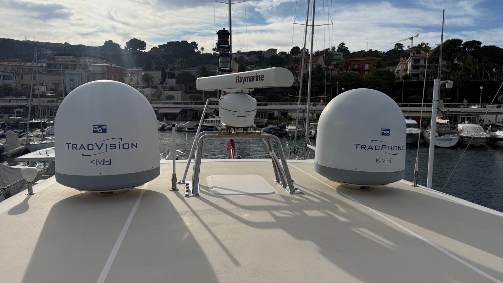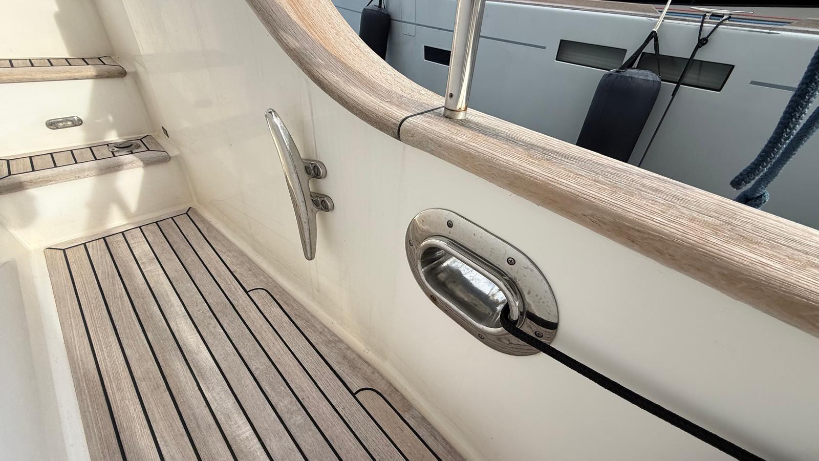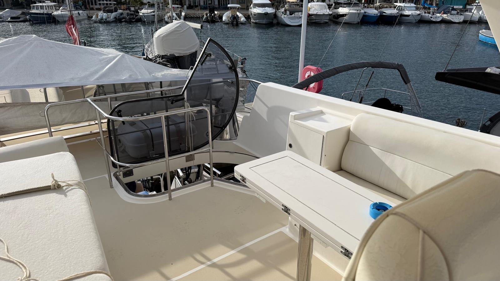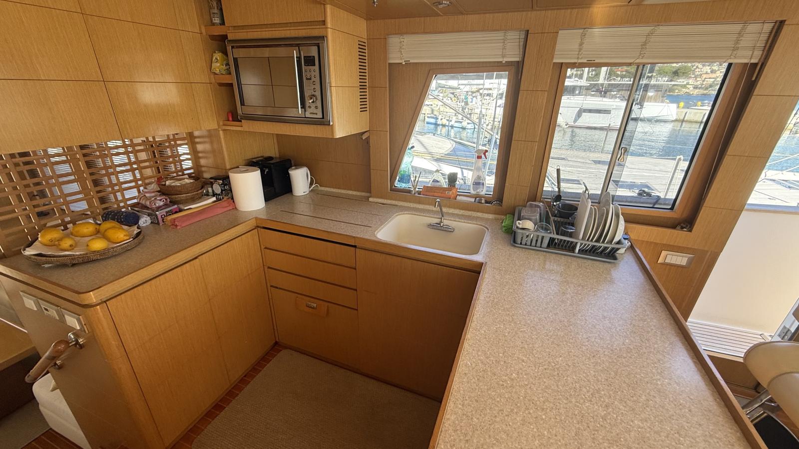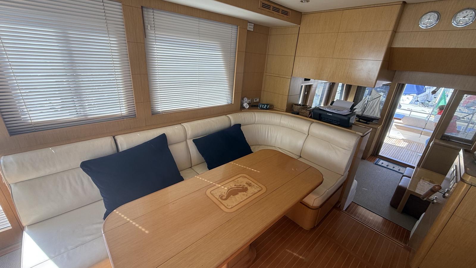 Her interior layout accommodates up to 6 guests in 3 staterooms, all with ensuite bathrooms. The full-beam master suite features custom joinery and exceptional comfort, complemented by a VIP stateroom and a guest cabin with twin berths. The two-level salon with raised pilothouse creates a bright and welcoming living space.