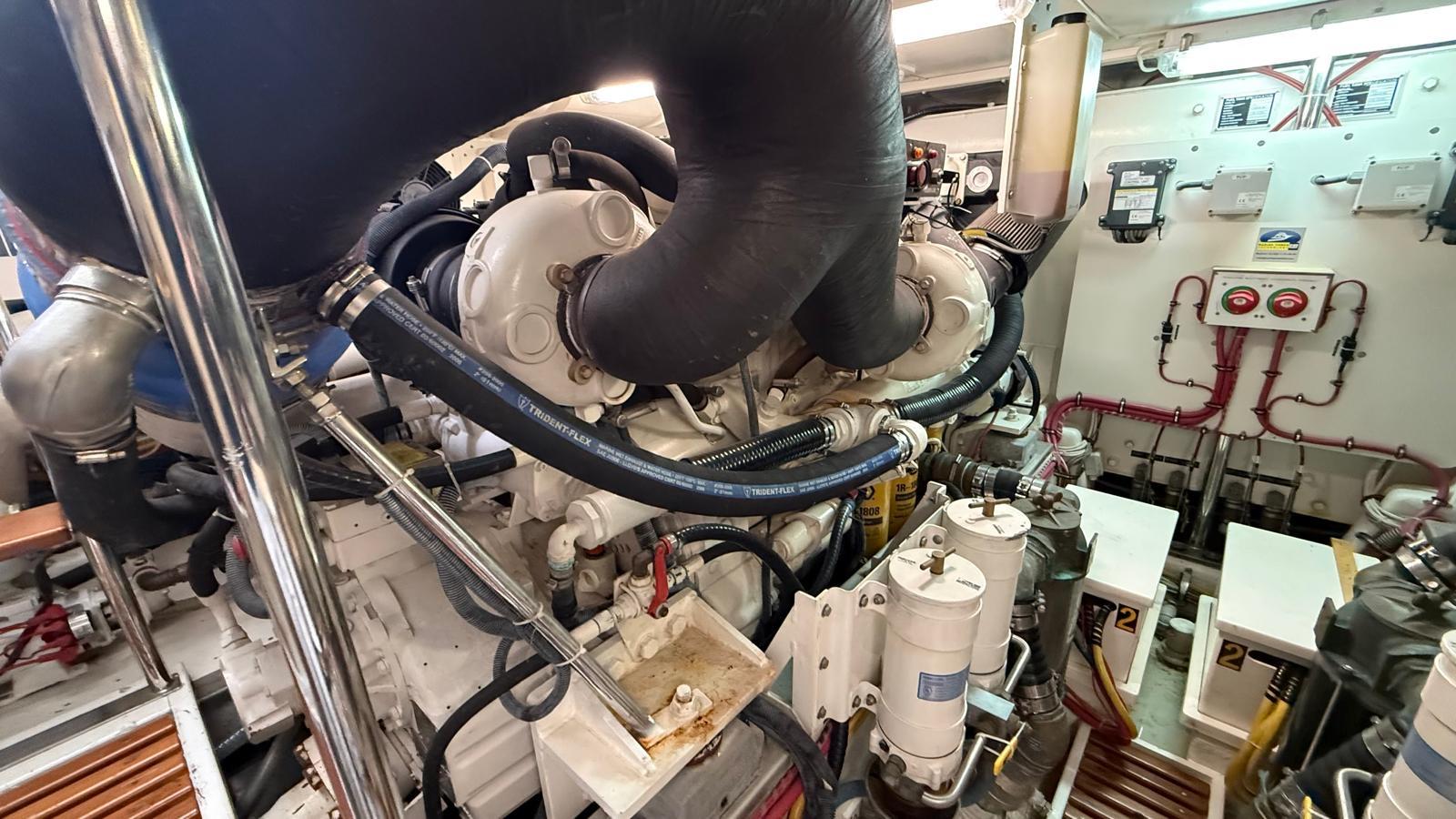Powered by twin Caterpillar C18 ACERT engines of 1,000 hp each (2,000 hp total), she shows only 1,225 running hours. This configuration allows her to cruise comfortably at 20 knots and reach an impressive top speed of 25+ knots, while maintaining the stability and quietness that Grand Banks is renowned for.