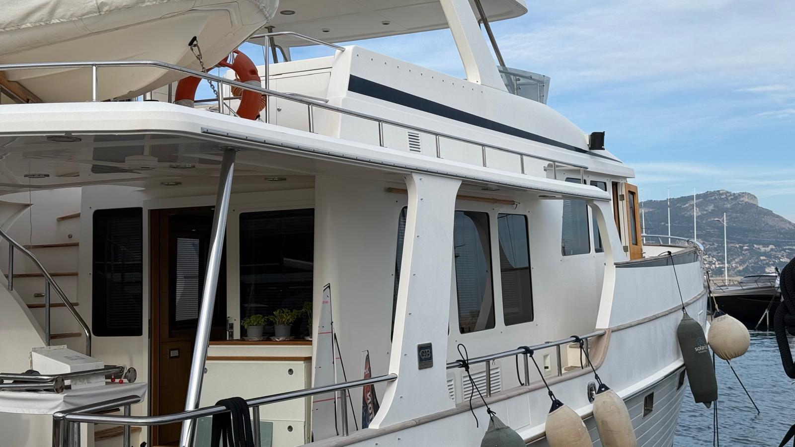GRAND BANKS 59 ALEUTIAN RP is a 17.85M (58'7") performance trawler, built in 2007 by the American Grand Banks shipyard. In good overall condition, she has been carefully maintained by her successive owners. Her modified deep-V hull, designed in collaboration with naval architects Sparkman & Stephens, combines remarkable performance with offshore cruising comfort.