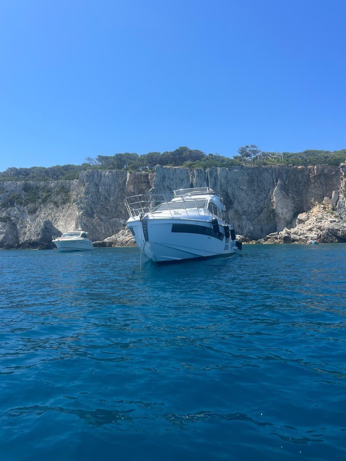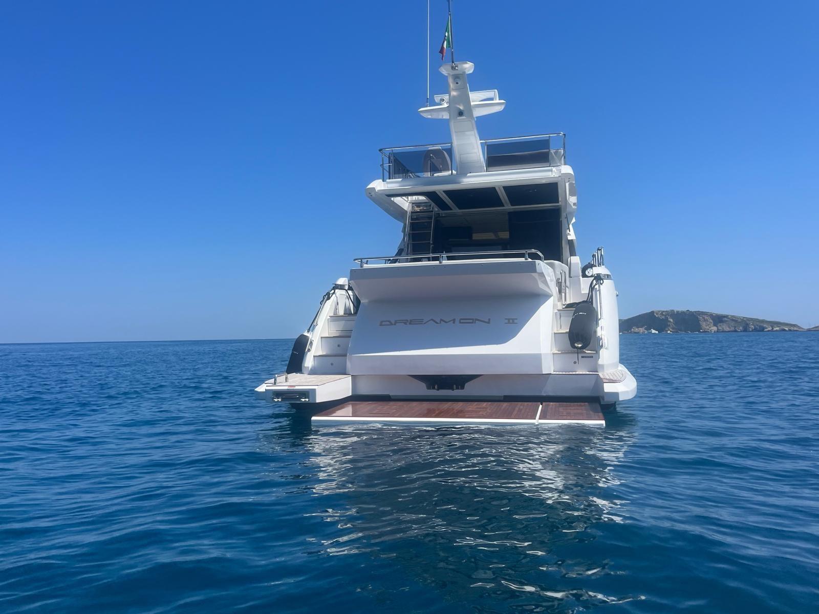Engine Alarm, Bilge Alarm, Alternator, Water pressure pump, Deck Shower, Directional Spotlight, Electric Flaps, Tender Garage, Fire Extinguishing System, Flaps Indicators, Anchor Chain Washdown, Washbasin in the cockpit, Courtesy Lights, Underwater lights, Gangway, Platform, Automatic Bilge Pump, Manual Bilge Pump, Side door, Teak Cockpit, Shorepower connector, Electric Windlass, swimming ladder, cockpit table, Horn, Stern Winches, Bow Winches.