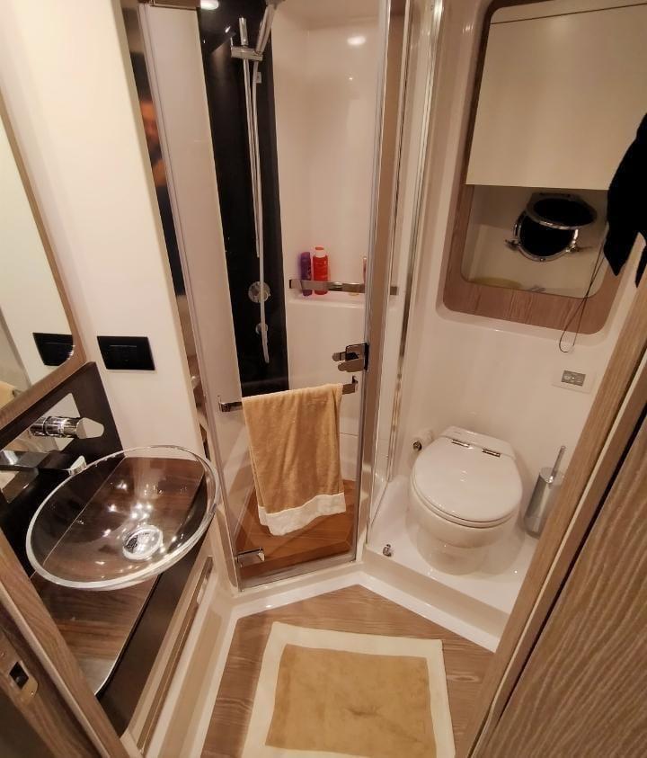 BBQ/Grill, Warm Water System, Inverter Air Conditioning, Waste Water Plant, Interior wooden floor, 12V Outlets, 220V Outlets, Video camera, Termovision, Electric Toilet.