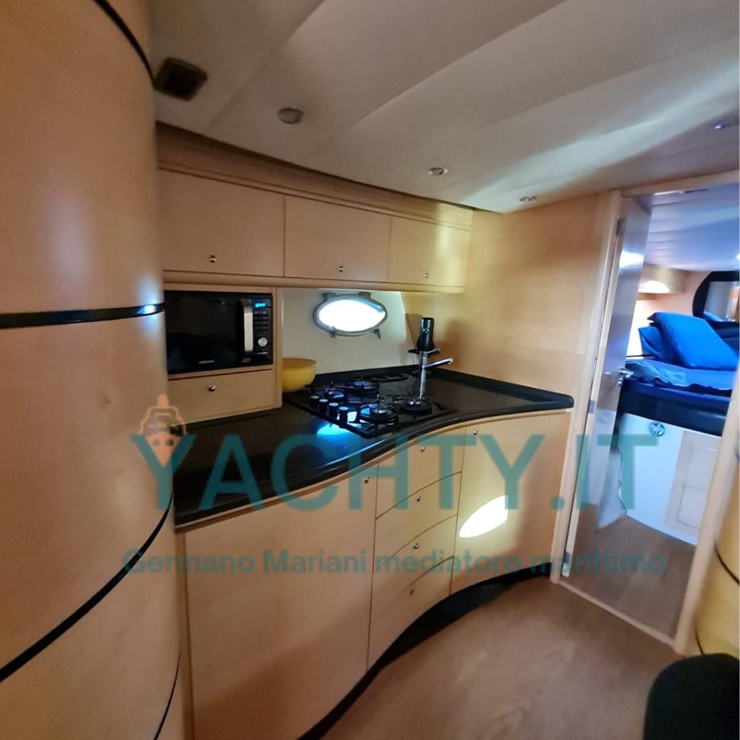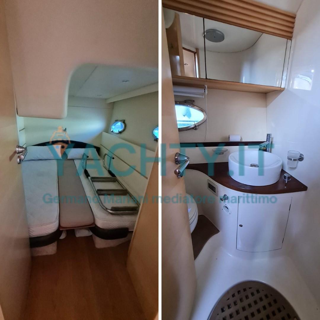 Layout with 3 cabins, 2 bathrooms, dinette, double galley (indoor + outdoor). Garage tender with new electric pistons, electric winch and dedicated compressor.