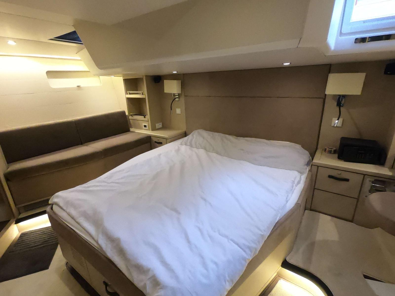 Private first owner, Jeanneau 64 Yacht with 3 double cabins owners room aft, 1 side cabin with Bunk beds, and separate fwd skippers room.exstras installed include a Stern and Bow thruster, 17.5Kw Generator, 350Lt/h water maker, air condition, electric winches, electric gib roller, electric toilets, teak decks, hydraulic gangway and garage door, jet dingy, and many more.