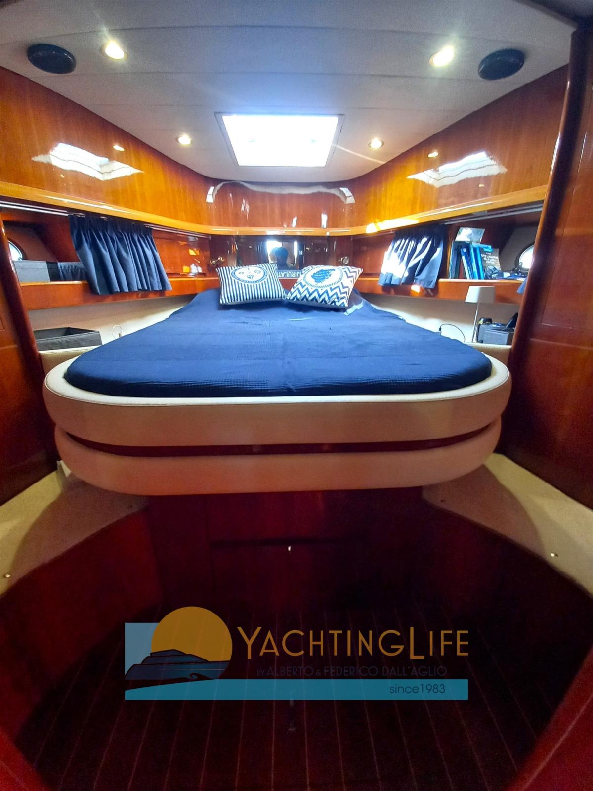 Engine Alarm, Water pressure pump (N. 1), Shore power cable, Special Colour (Blu), Deck Shower, Directional Spotlight, Hydraulic Flaps (N. 2), Hard top, Flaps Indicators, Washbasin in the cockpit, Courtesy Lights, Gangway (Idraulica), Platform, Automatic Bilge Pump, Entry door, Teak Cockpit, Shorepower connector, Electric Windlass, swimming ladder, cockpit table, Horn.
