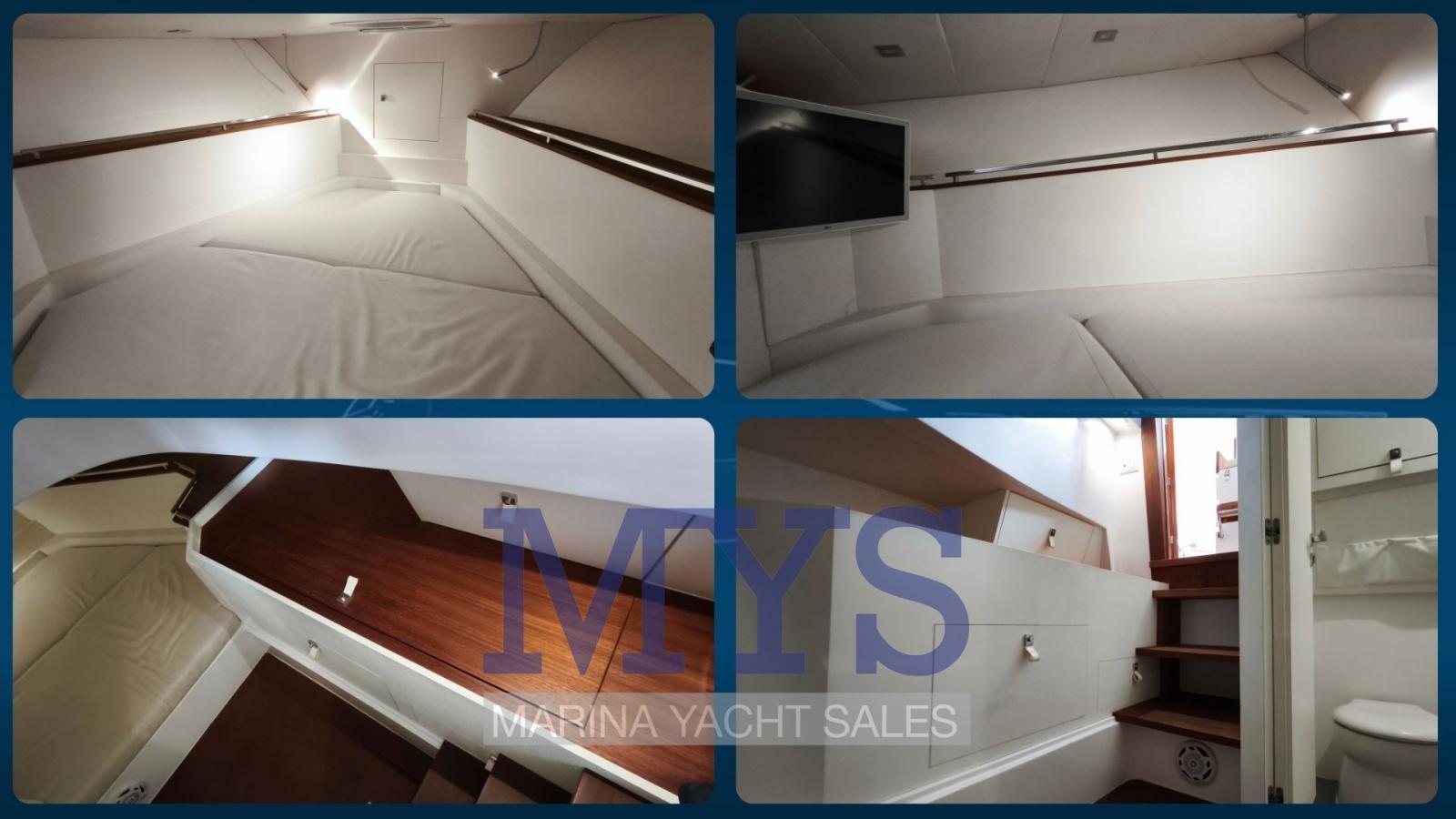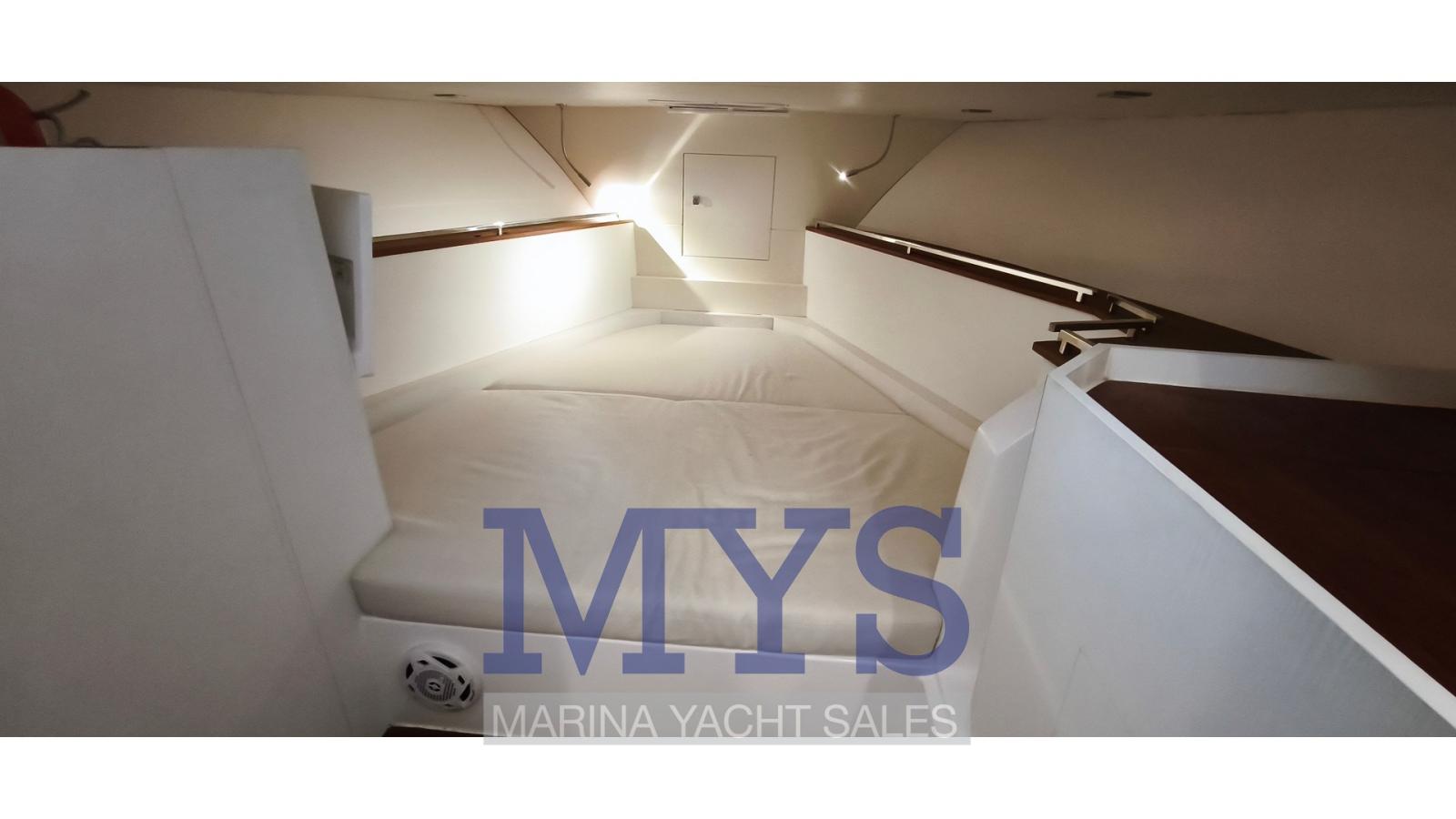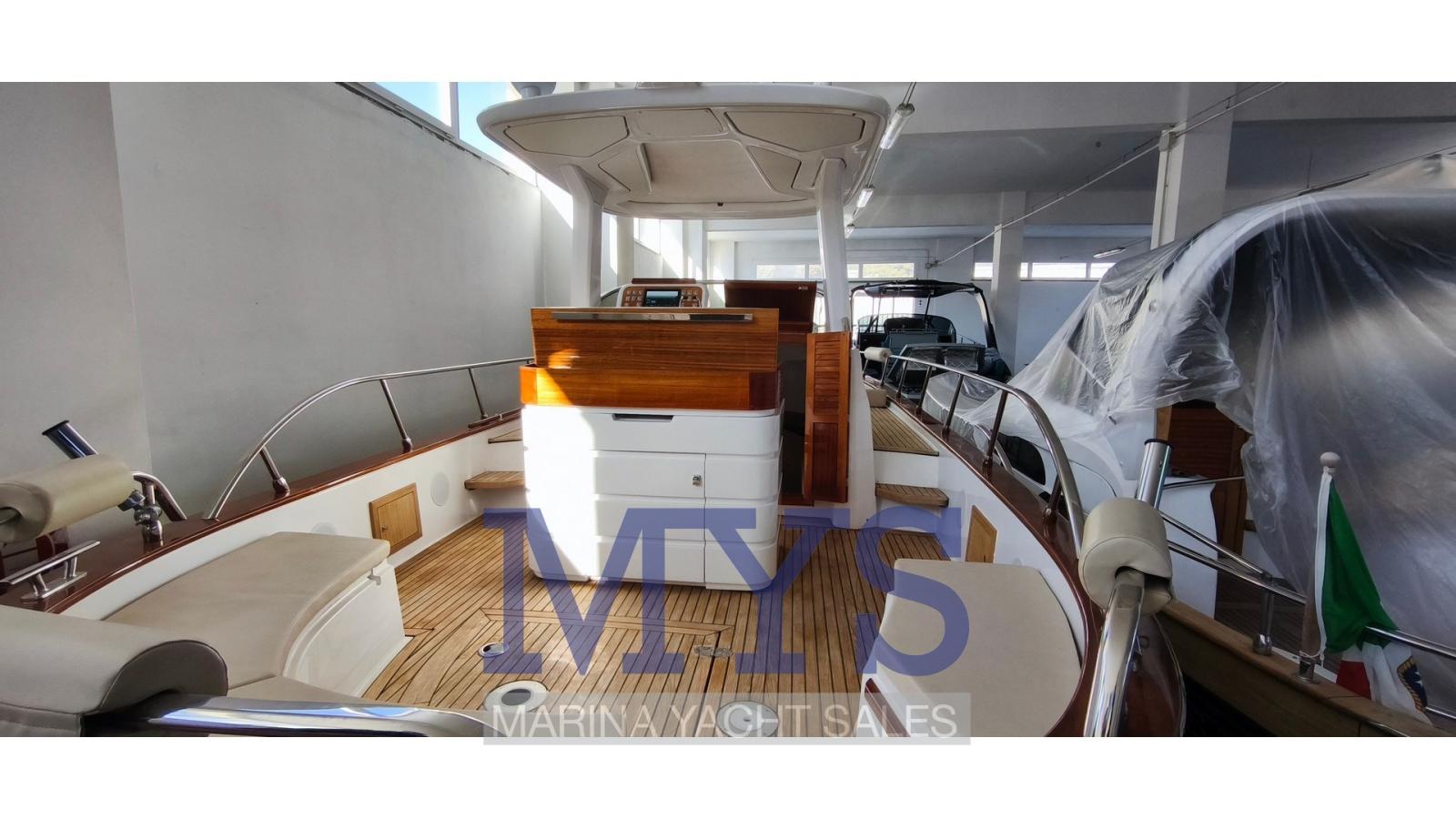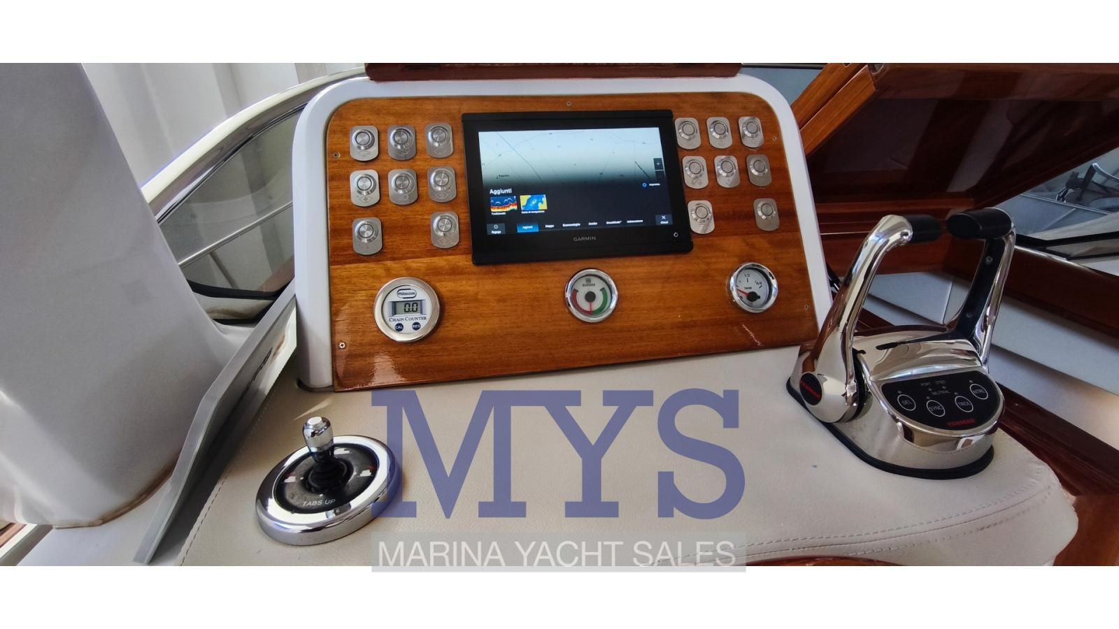 Rudder angle indicator, Electronic engine control, On-Board Computer, Chain counter, DSC vhf (Garmin), Depth Sounder (Garmin 9), GPS (Garmin 9), Joystick (per i Flaps), Maps and guides, Consumption monitor, Co-pilot seat.