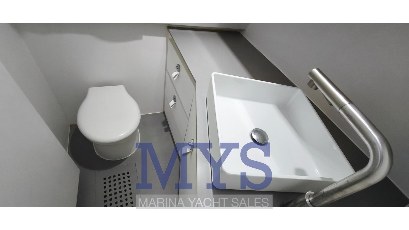 A double cabin in the bow in an open-plan environment and a separate bathroom with shower offer comfort and functionality
