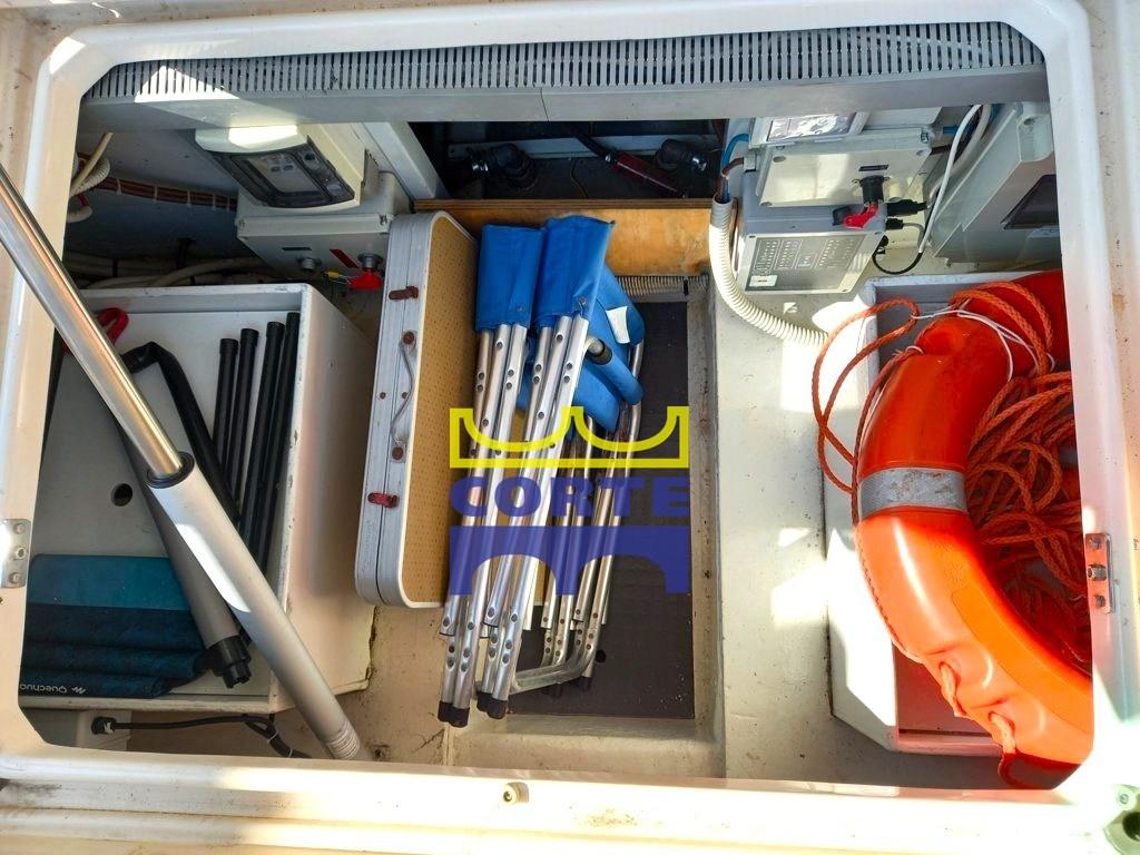 Engine Alarm, Bilge Alarm, Water pressure pump, 4 Batteries (2024), Deck Shower, Directional Spotlight (recente), Hydraulic Flaps, Tender Crane (passerella idraulica), Hard top, Fire Extinguishing System, Flaps Indicators, Washbasin in the cockpit, Courtesy Lights, Gangway (elettroidraulica), Platform (in teak), Automatic Bilge Pump, Entry door, Teak Cockpit, Shorepower connector, Electric Windlass, swimming ladder, cockpit table, Horn (potenziata 2024), Bow Winches.
