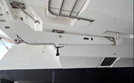 Sail plan includes a 101 sqm fully battened mainsail, 70 sqm self-tacking genoa and a 152 sqm Code 0 on electric furler (2022). All maneuvers are centralized to the flybridge with 5 electric winches, allowing safe short-handed sailing.