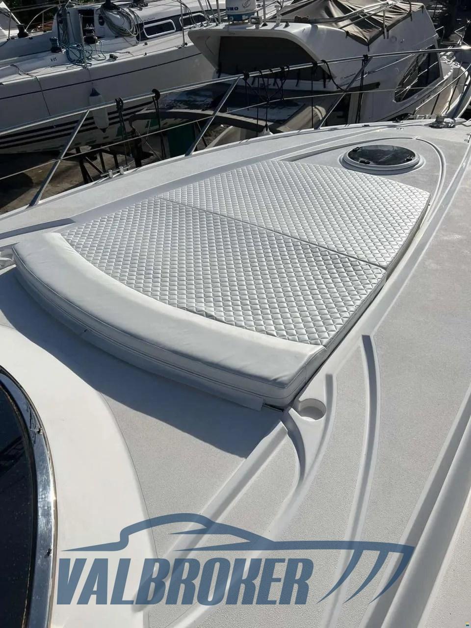 New interior and exterior upholstery, new flooring in the living room. Cherry wood interior. Bow and stern thruster, air conditioning, radar, generator. Two double cabins with facilities.