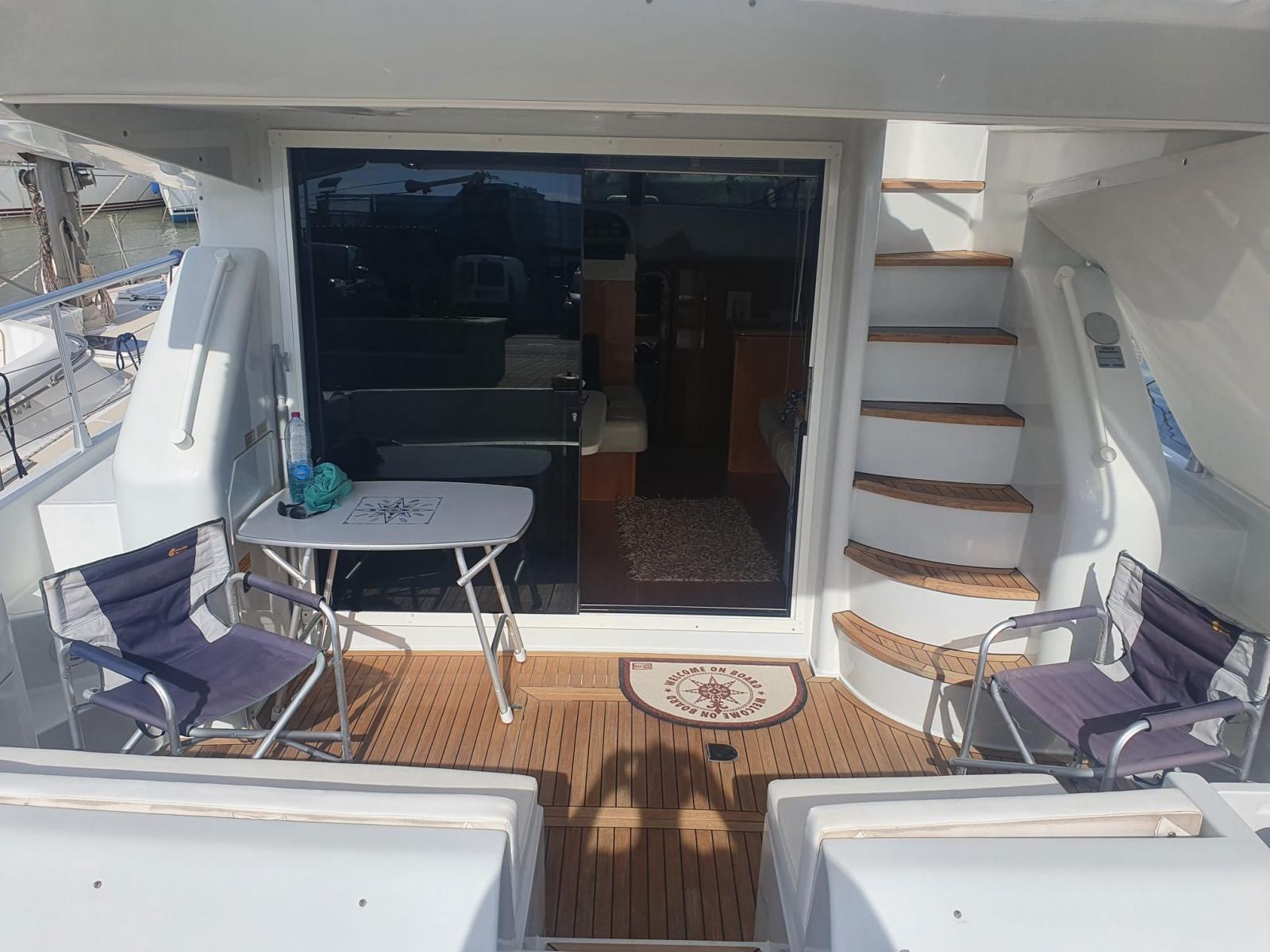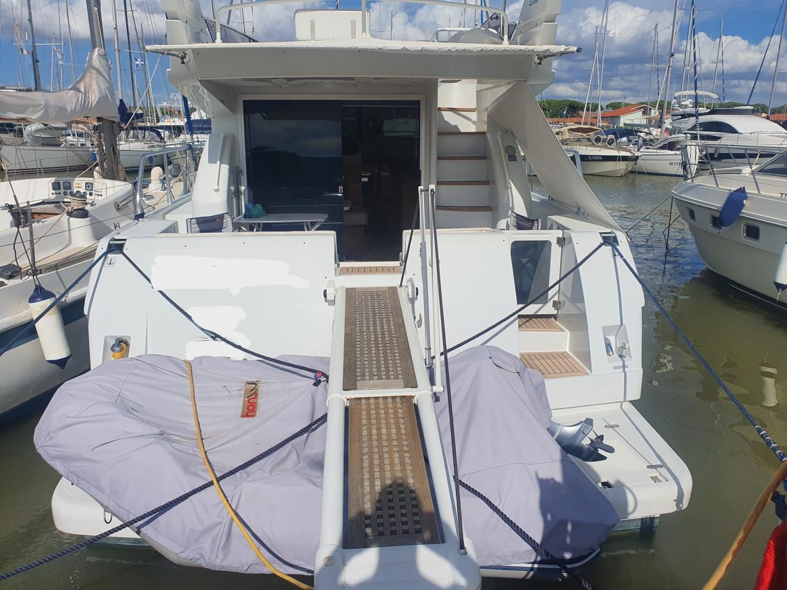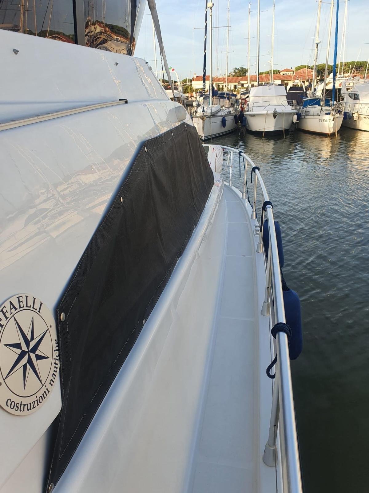 Engine Alarm, Anchor (Bruce 20 Kg + catena 8mm 75 metri), Spare shaft, Water pressure pump (Doppia autoclave), Battery charger (2021), Twin Steering, 2 Secondary Propeller, 2 Hydraulic Flaps, Fire Extinguishing System (automatico in sala macchina + estintori manuali), Flaps Indicators, Anchor Chain Washdown, Washbasin in the cockpit, Courtesy Lights, Underwater lights, Gangway (Besenzoni maggiorata), Automatic Bilge Pump, Entry door, Teak Cockpit, Shorepower connector, Water harbor connector system, Electric Windlass (Lofrans 1500w), swimming ladder, cockpit table, Tender (Mt 2.70 + motore Honda 6 cv nuovo 2022), Horn.