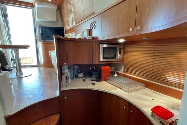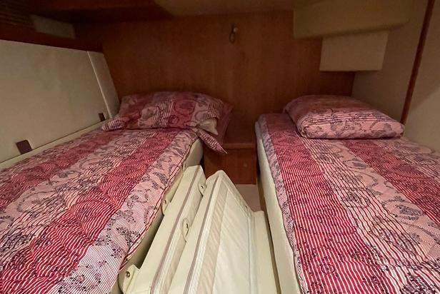 1 owner's cabin in the bow with large private bathroom 1 double cabin with flat beds 1 bathroom 1 kitchen