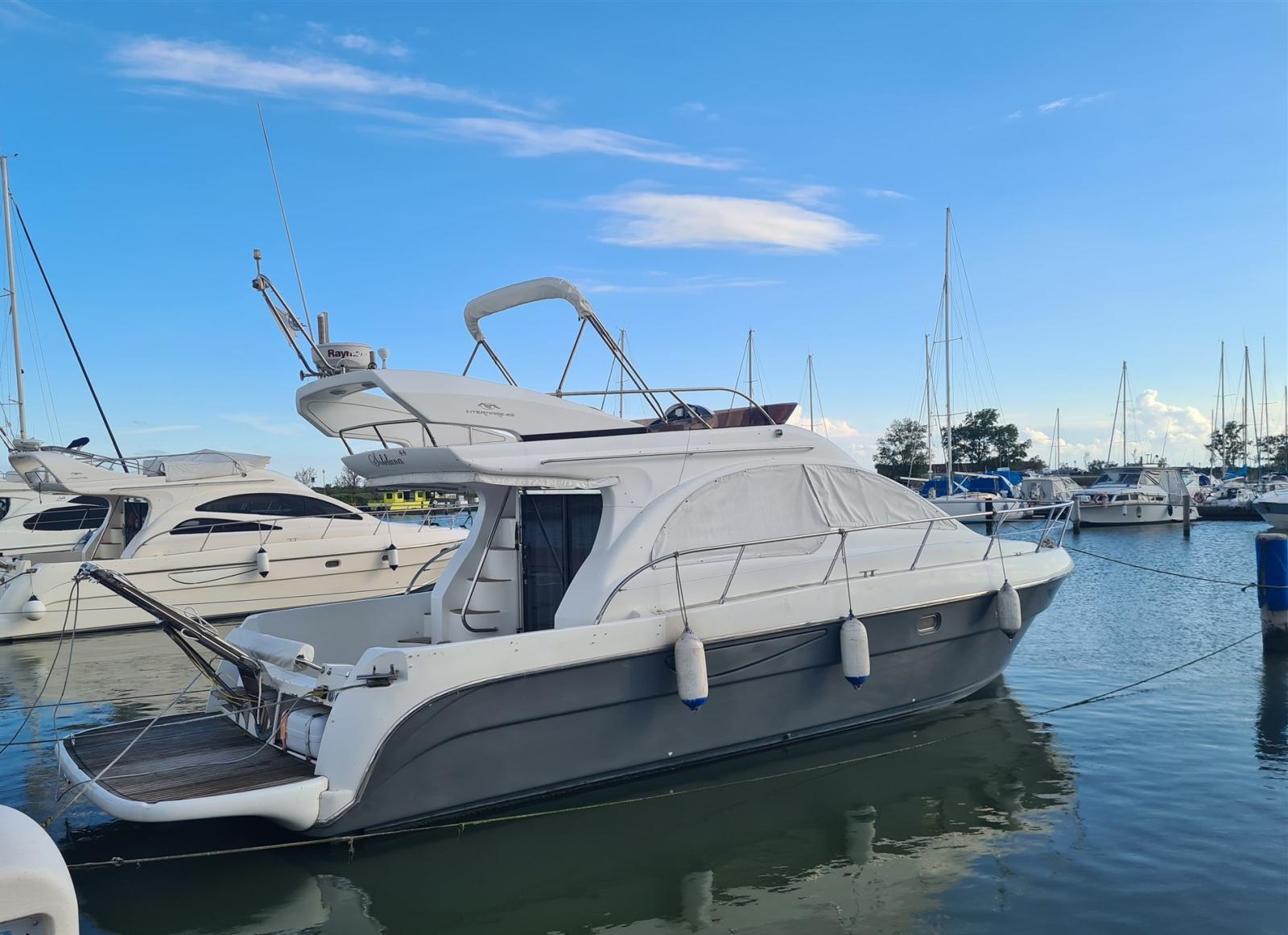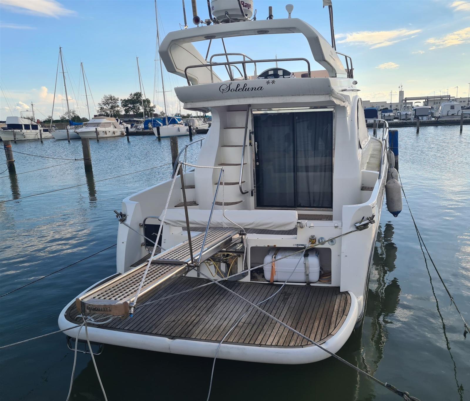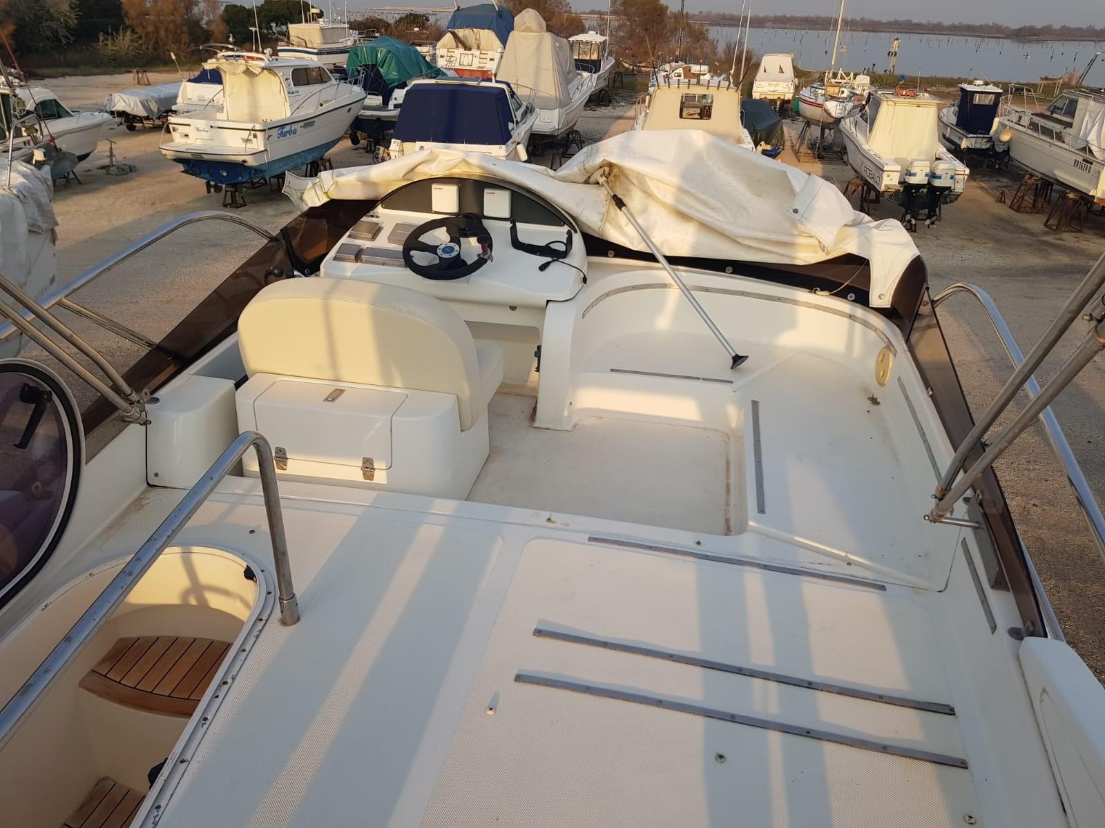 Fume/Gas Detector, Engine Alarm, Water pressure pump, 5 Batteries (2 servi + 2 motori + 1 elica di prua), Special Colour (Grigio), Deck Shower, Directional Spotlight, 2 Hydraulic Flaps, Flaps Indicators, Gangway (Opac Mare idraulica), Platform (in teak), Automatic Bilge Pump, Entry door, Teak Cockpit, Shorepower connector, Water harbor connector system, Voltage Rectifier, Electronic instrumentation repeater, Electric Windlass, swimming ladder, cockpit table (tavolo fatto per essere usato in dinette e in pozzetto), Horn.