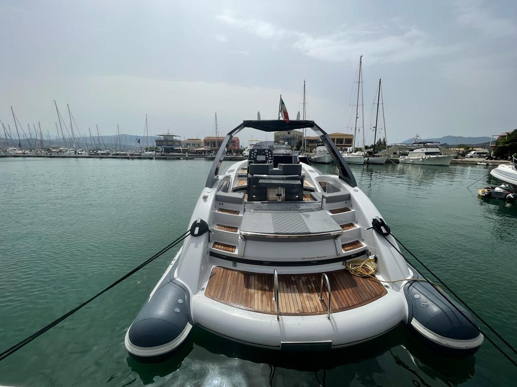 The refined lines of this maxi rib make it unmistakable and inimitable. The on-board home automation technology adopts solutions never seen before in this category. An exclusive and innovative design, enriched by fine materials and luxury finishes, with large interior spaces, separate bathroom and two large windows on the sides, allow a comfortable stay for four people and make the on-board experience unique.