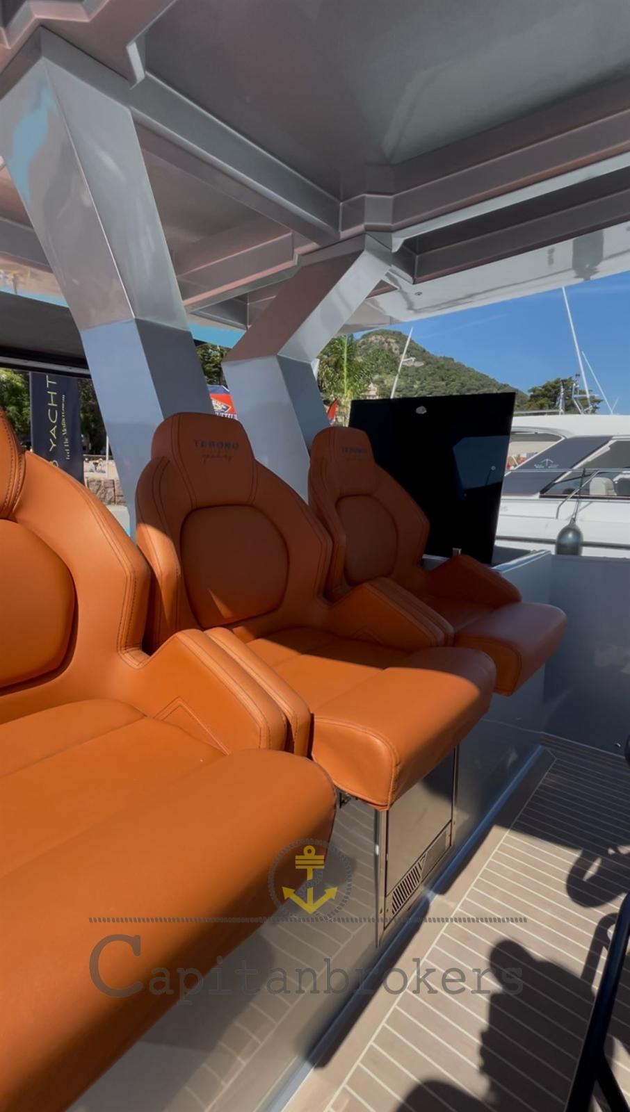 Engine Alarm, Bilge Alarm, Electric Engine Compartment Opening, Water pressure pump, Teak Side Decks (Flexeteek), Hard top, Washbasin in the cockpit, Courtesy Lights, Platform (flexiteek), Automatic Bilge Pump, Manual Bilge Pump, Teak Cockpit (flexiteek), Shorepower connector, Water harbor connector system, Electric Windlass, swimming ladder, cockpit table, Horn.