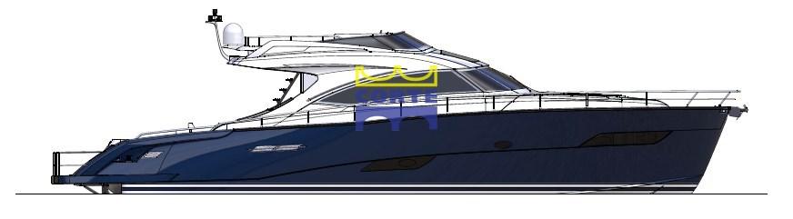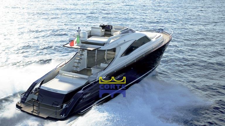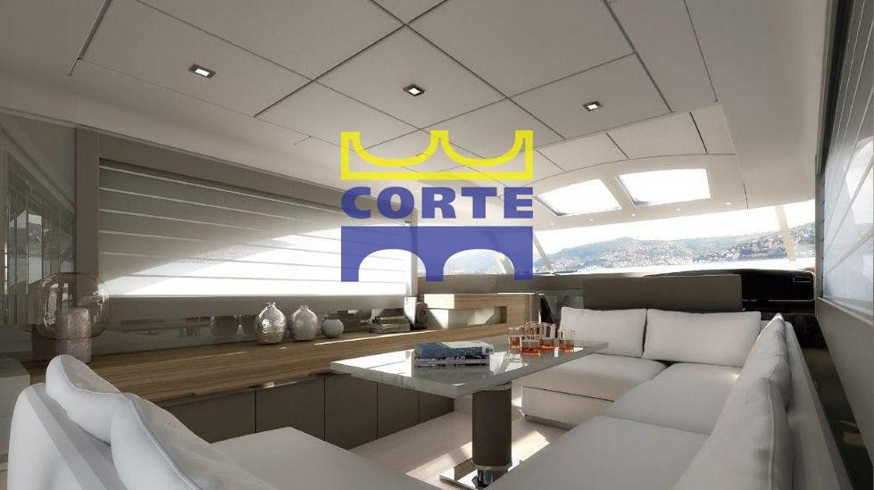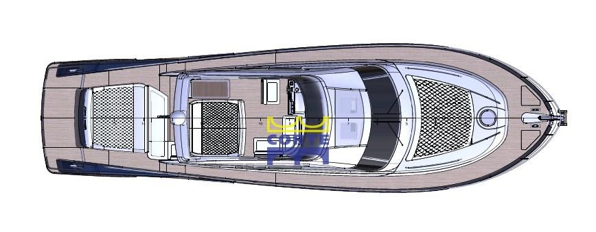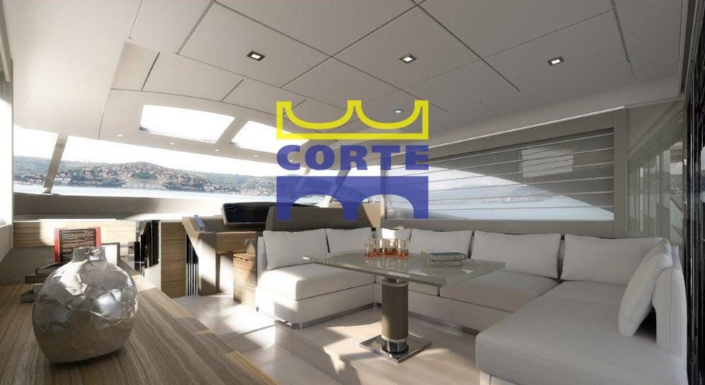 Bimini (pozzetto con candelieri), Stern Cushions, Bow Cushions, Fly Bridge Cuscions, Cockpit Cushions, Sunshade.