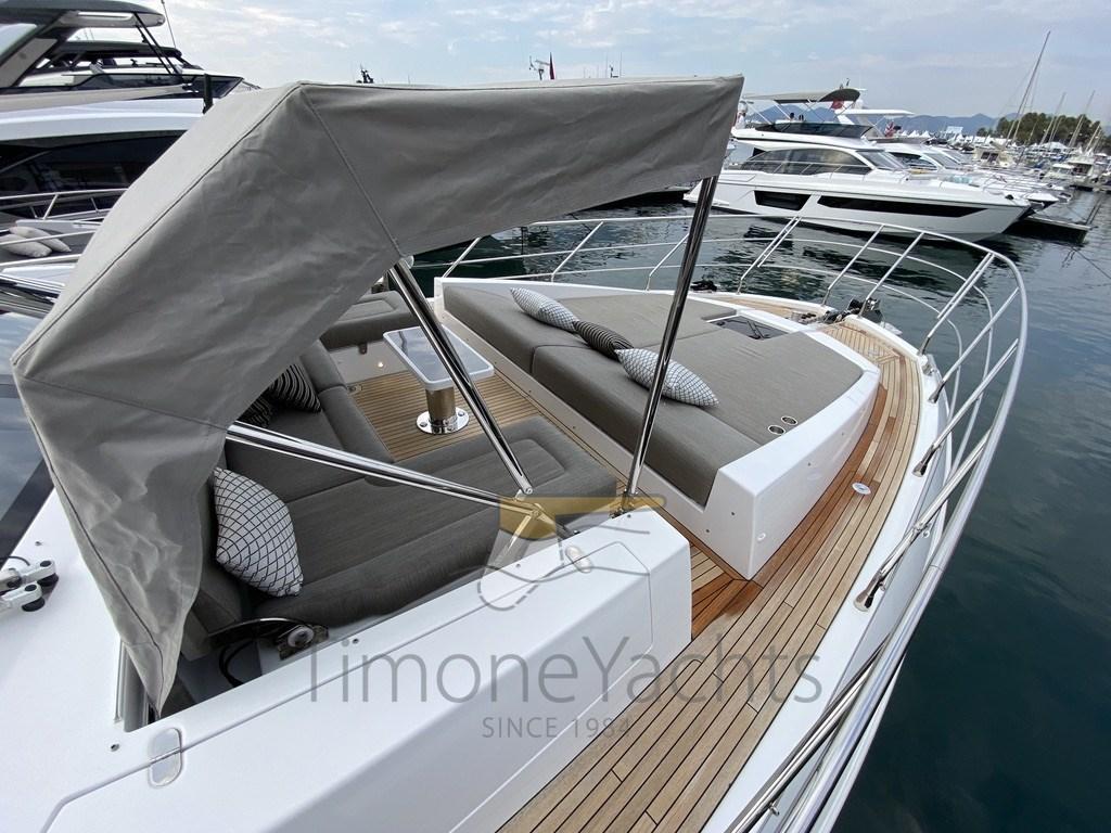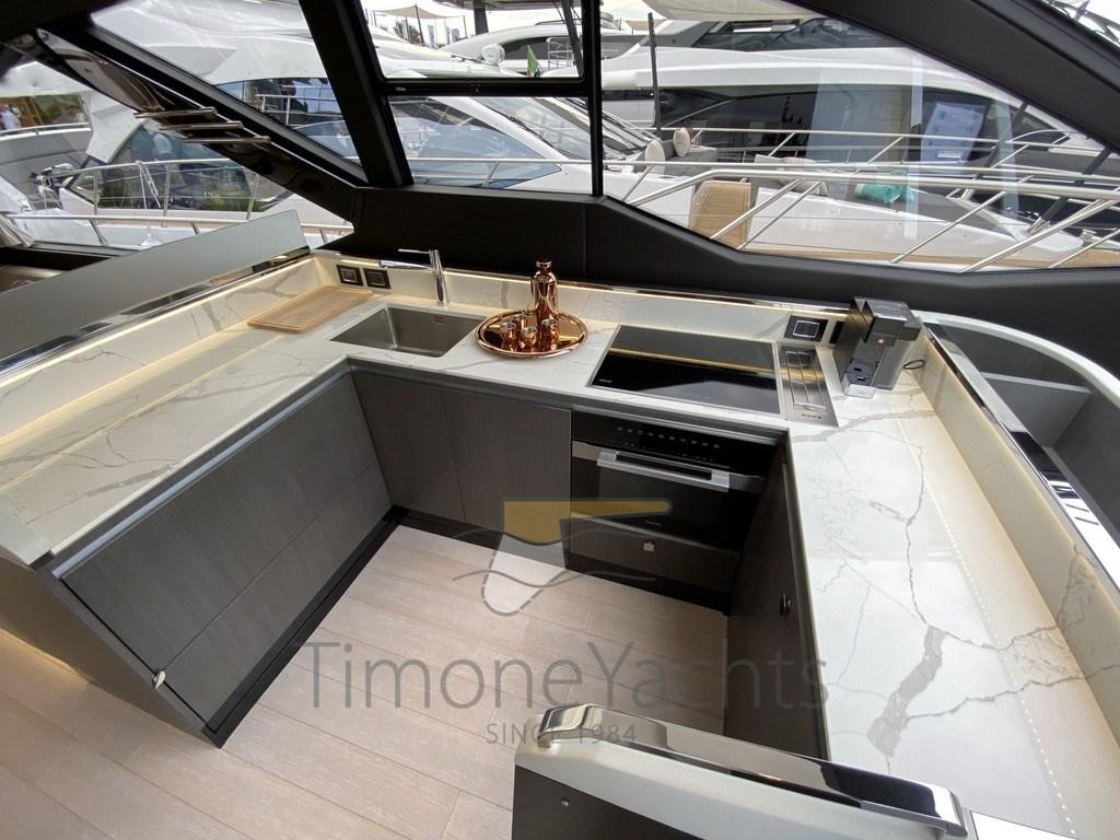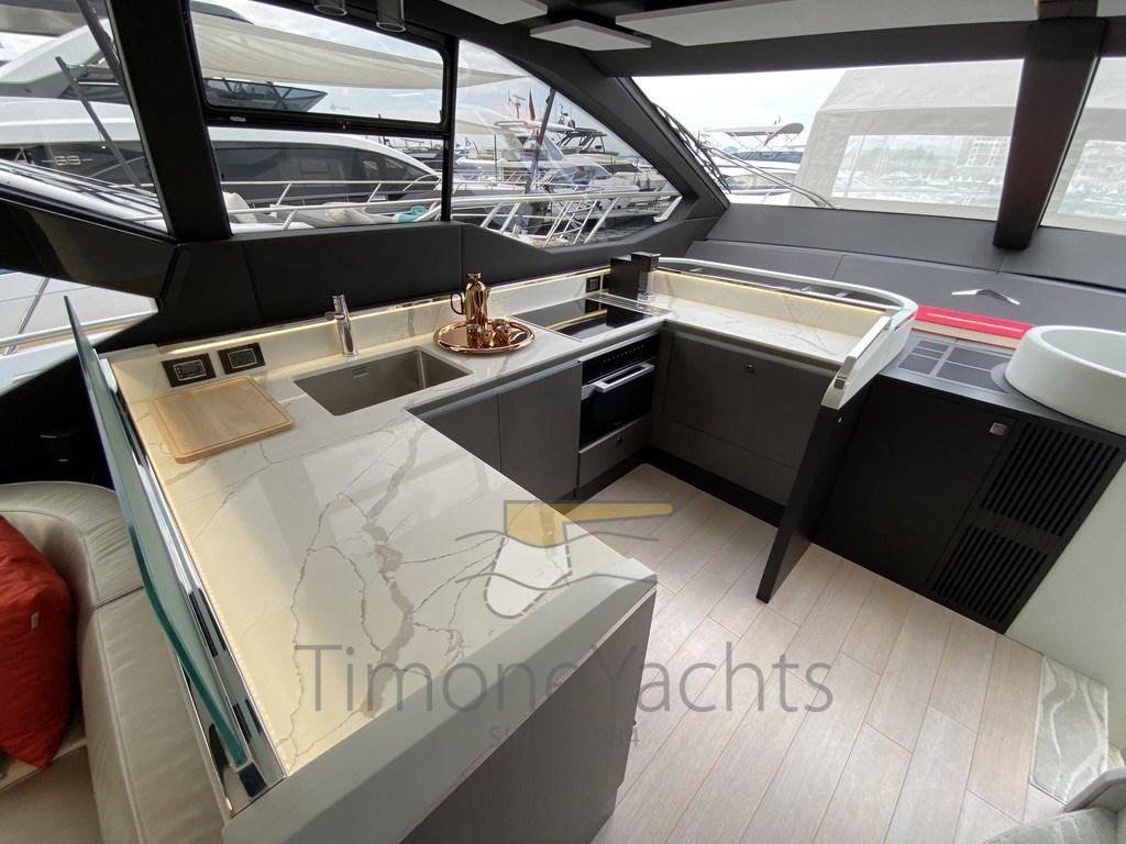 Fume/Gas Detector, Engine Alarm, Bilge Alarm, Water pressure pump, Auto-Trim, Teak Side Decks, Deck Shower, Twin Steering, Directional Spotlight, Hydraulic Flaps, Tender Garage, Hard top, Fire Extinguishing System, Flaps Indicators, Anchor Chain Washdown, Washbasin in the cockpit, Courtesy Lights, Underwater lights, Gangway, Platform, Automatic Bilge Pump, Manual Bilge Pump, Entry door, Teak Cockpit, Shorepower connector, Water harbor connector system, Voltage Rectifier, Electronic instrumentation repeater, Rollbar, Electric Windlass, swimming ladder, Stabilizers (Seakeeper NG 16), cockpit table, Horn, Teak Deckhouse, 2 Stern Winches, Bow Winches.
