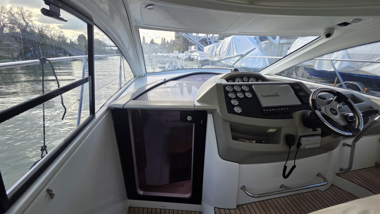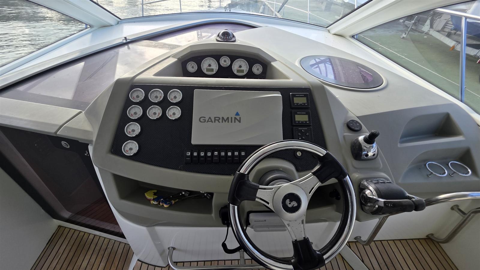 Radar Antenna (GARMIN), Electronic engine control, Joystick (VOLVO PENTA), Plotter with GPS antenna (GARMIN), Co-pilot seat.