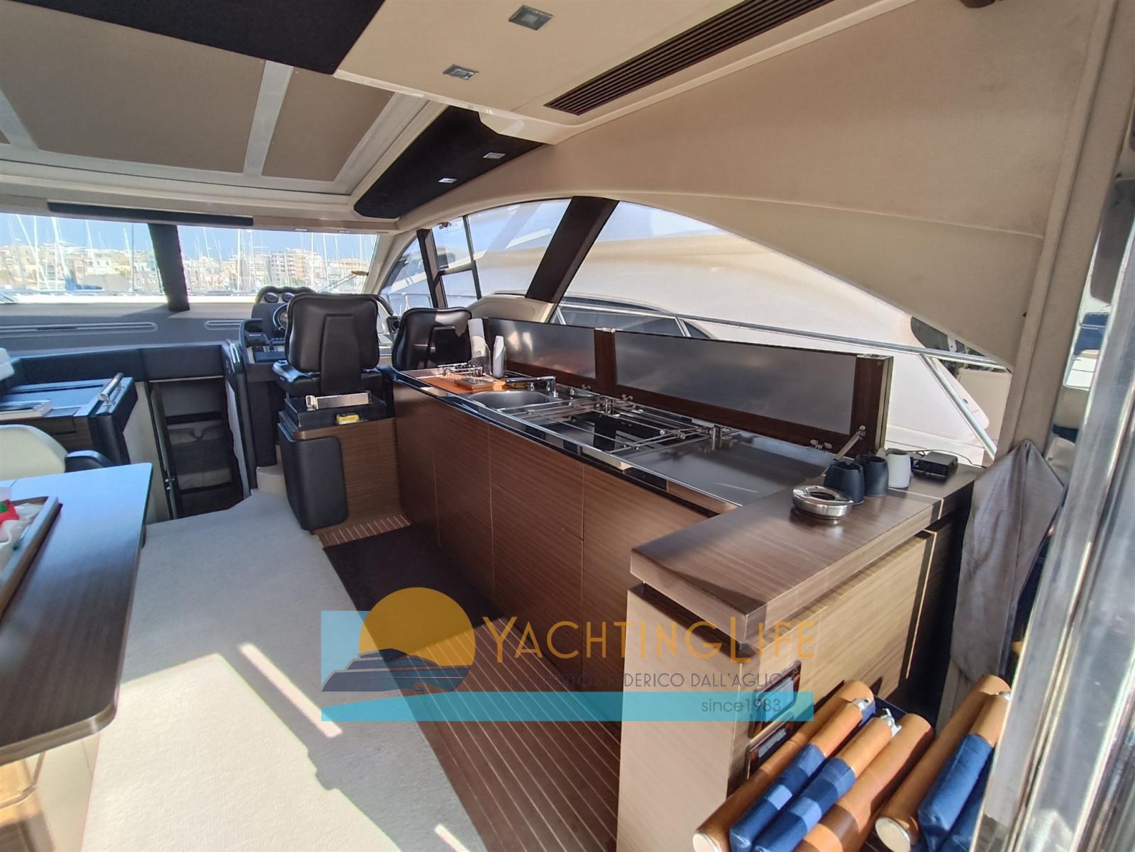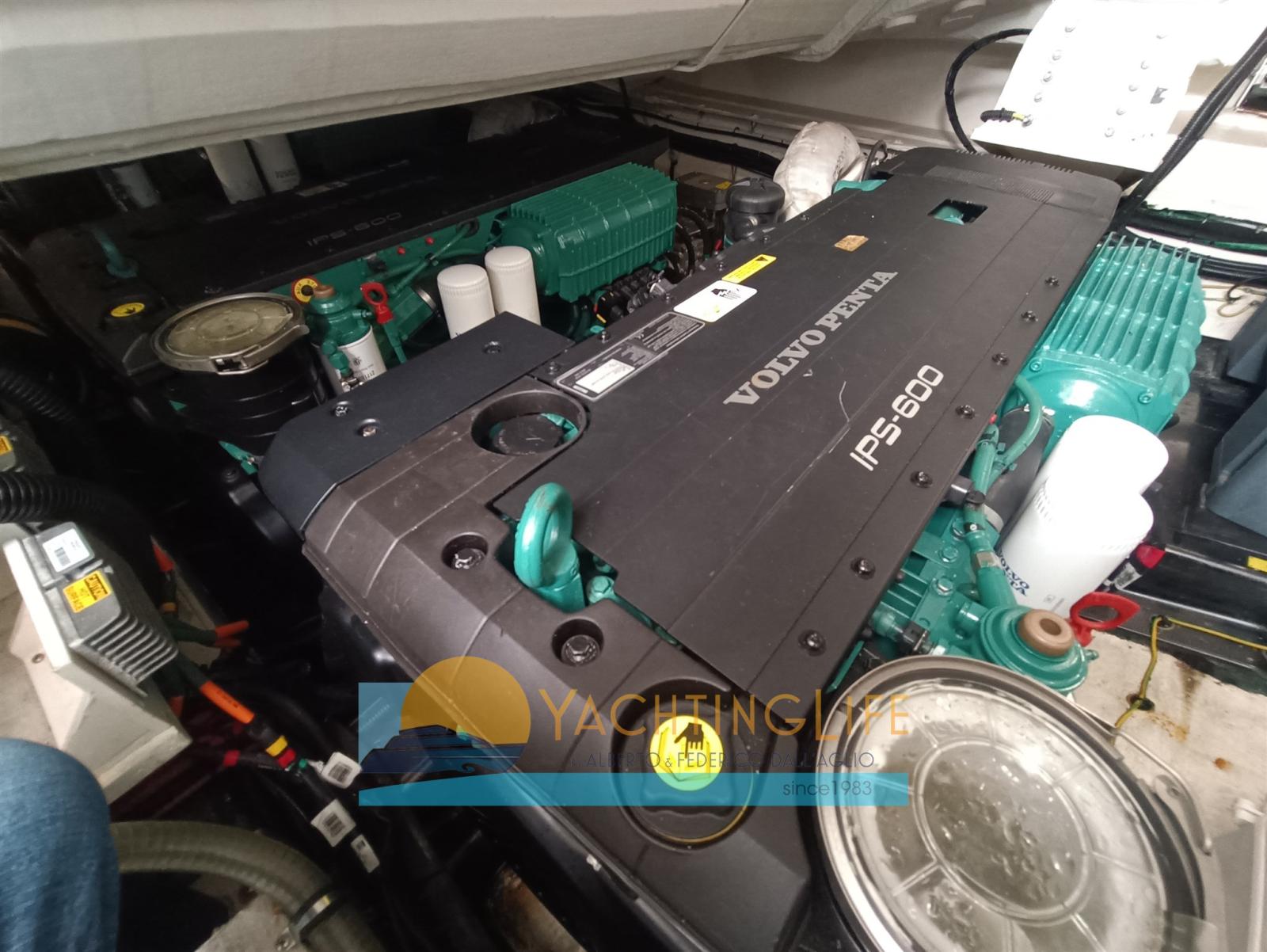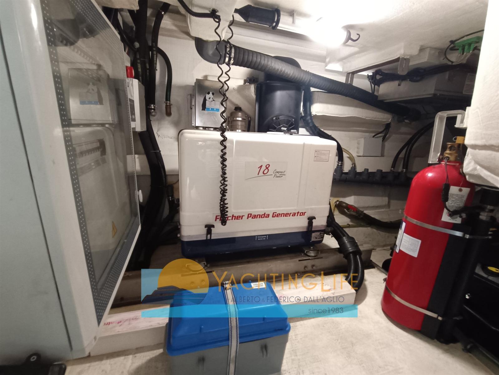 Engine Alarm, Bilge Alarm, Water pressure pump, Deck Shower, Electric Flaps, Tender Garage, Hard top, Flaps Indicators, Courtesy Lights, Gangway (idraulica a scomparsa), Platform (idraulica), Automatic Bilge Pump, Entry door, Teak Cockpit, Shorepower connector, Electric Windlass, swimming ladder, Saddles for tender, cockpit table, Horn, Stern Winches.