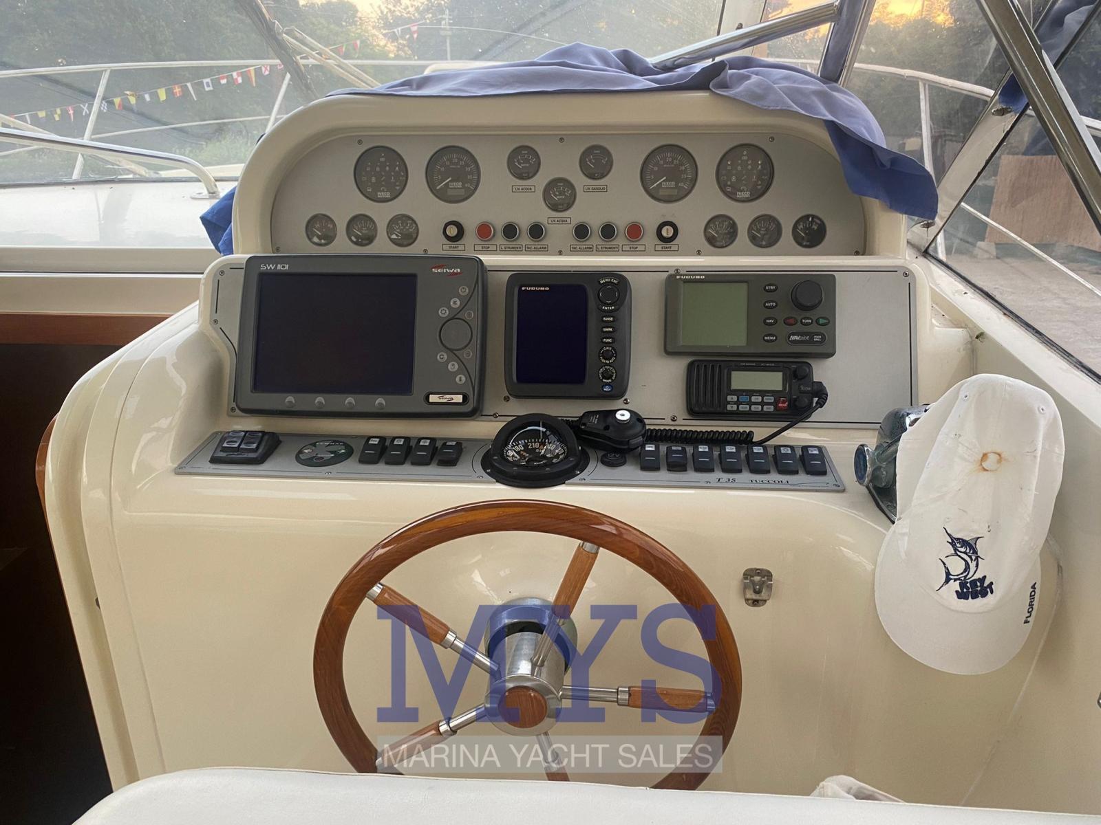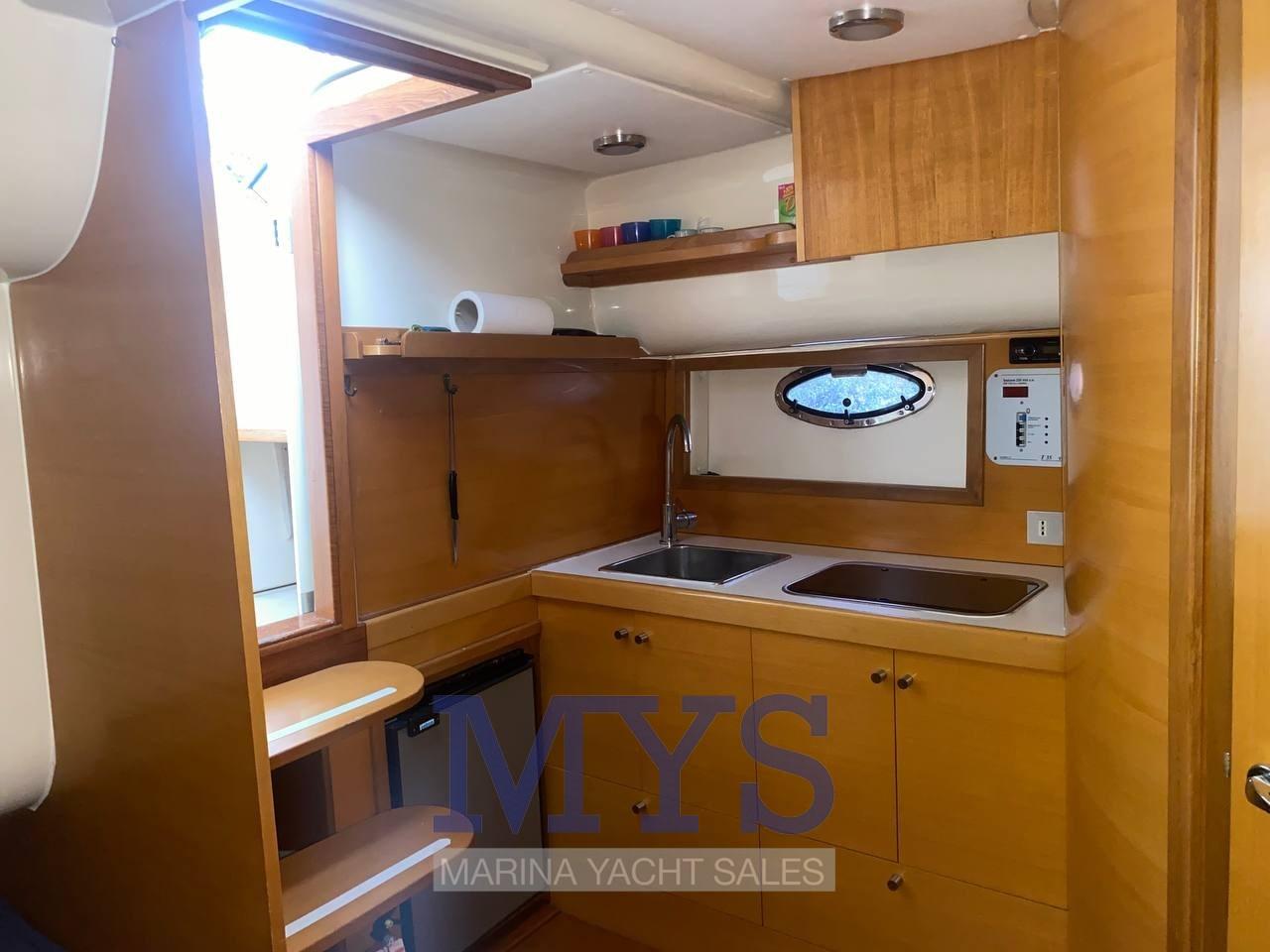 Engine Alarm, Bilge Alarm, Water pressure pump, Deck Shower, Hydraulic Flaps, Automatic Bilge Pump, Entry door, Shorepower connector, Electric Windlass, swimming ladder, Horn, T-Top.
