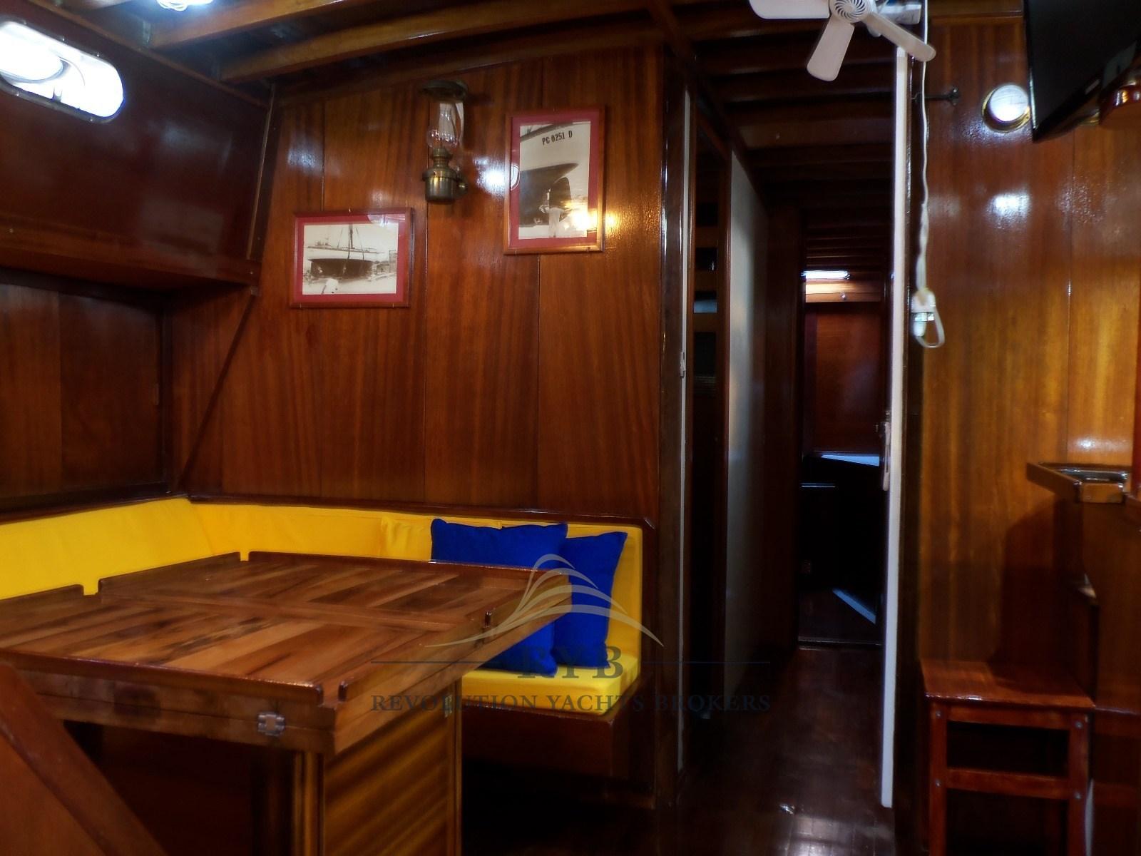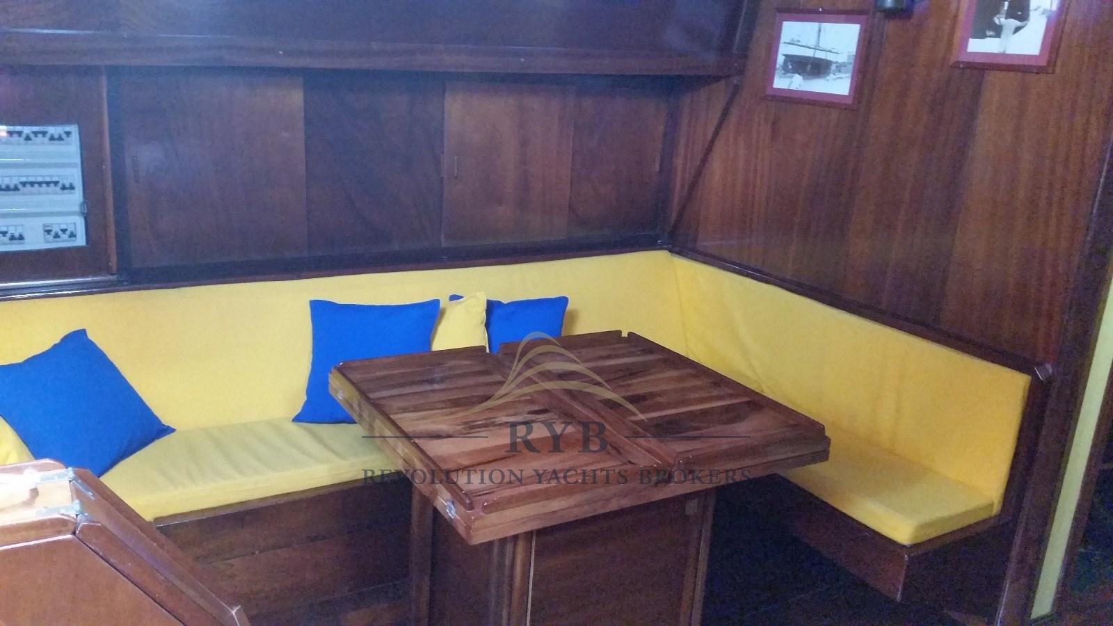 The interiors finished in mahogany, all with an environment at eye level, are divided into 3 cabins, 2 of which are double + single bed and 1 twin with bunk bed for a total of 6/8 beds, 3 bathrooms equipped with electric toilet and a dinette - kitchen equipped with air conditioning with table and large sofas, complete with fridge and accessories. The cockpit, comfortable and sheltered, includes the wheelhouse and 2 large lockers that enclose, one the electrical system and the other an additional freezer, the boiler for hot water and the LPG cylinder.
