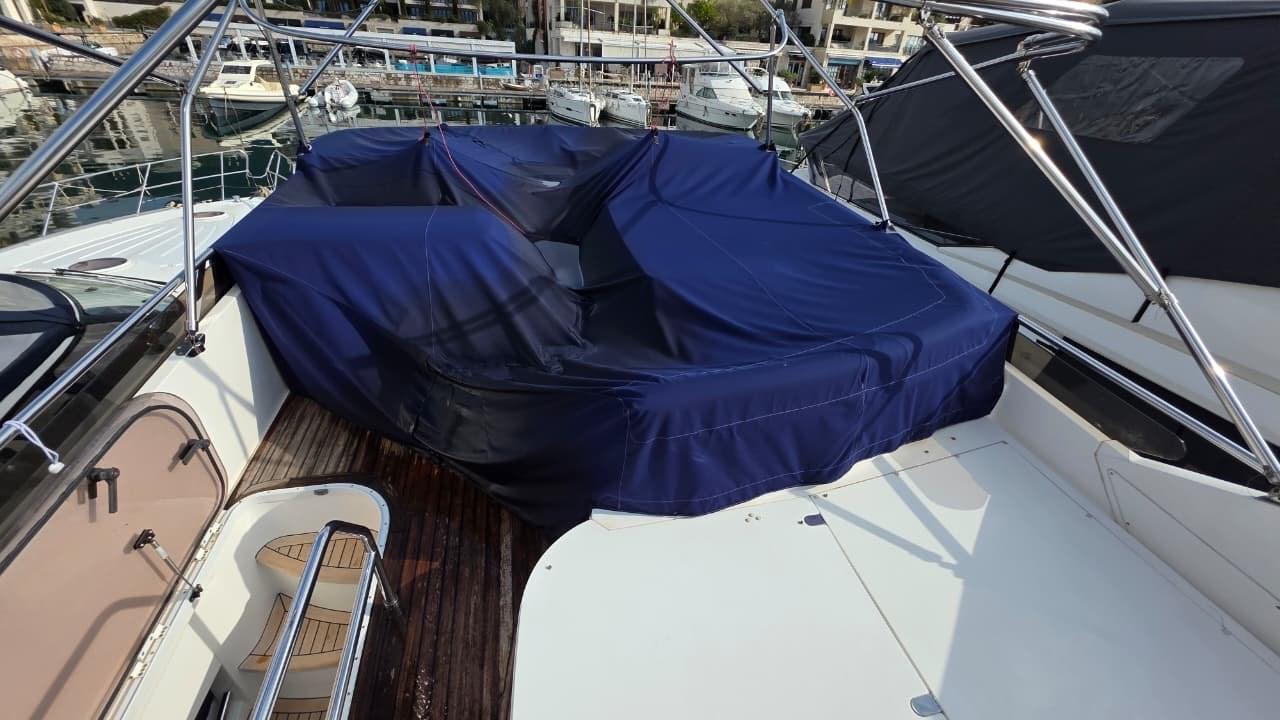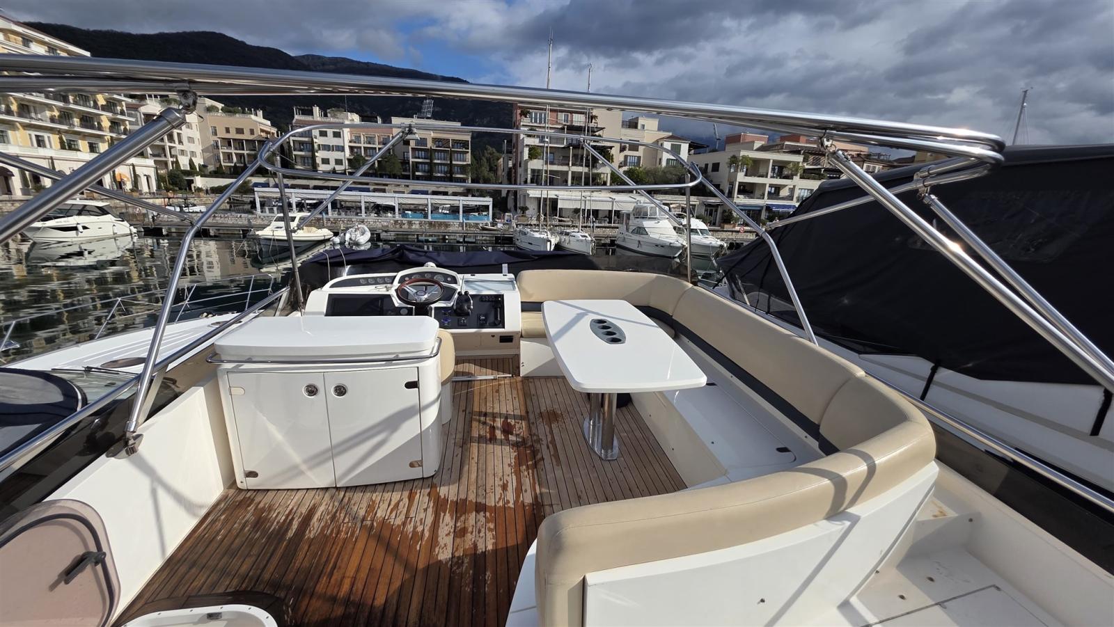 on deck (and fly original), teak in cockpit (NEW 2021), cockpit table, outdoor shower, hydraulic gangway,