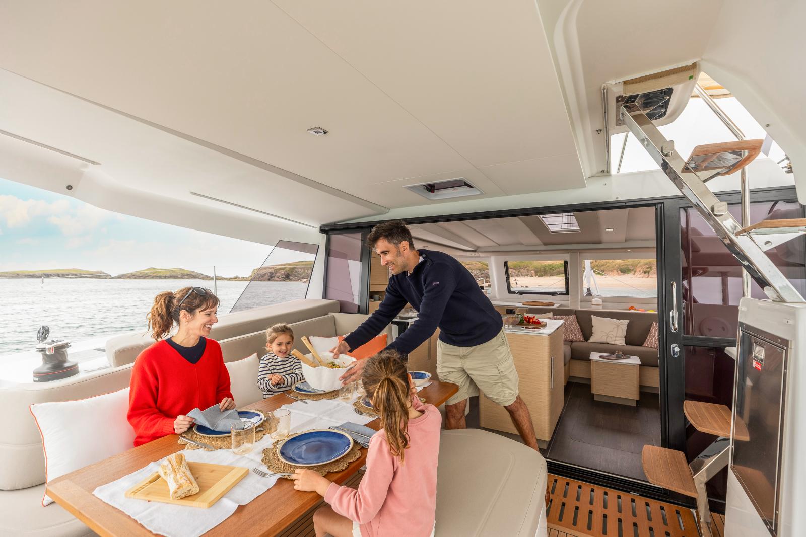 This catamaran embodies the essence of cruising: safety, comfort, and conviviality.