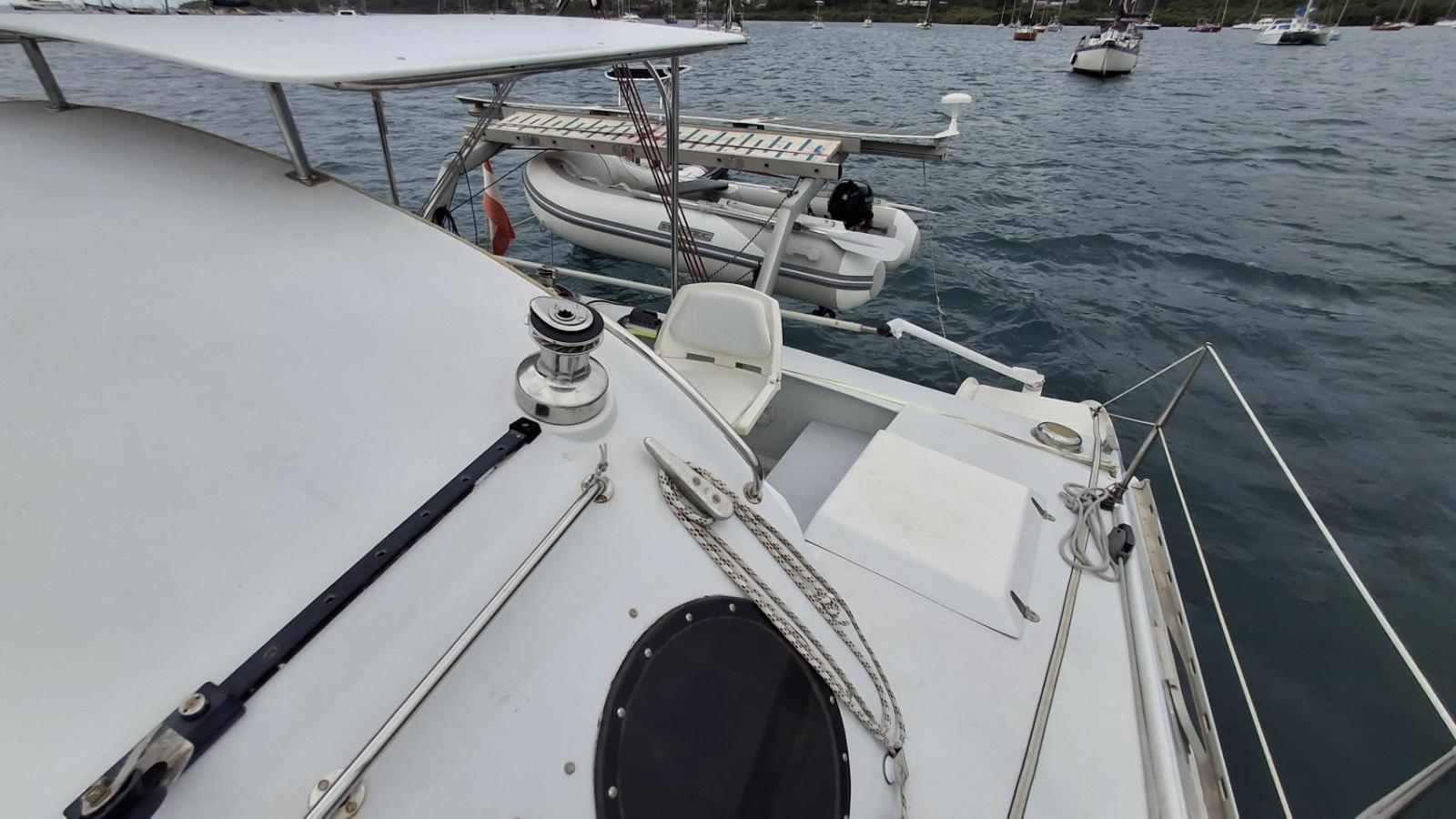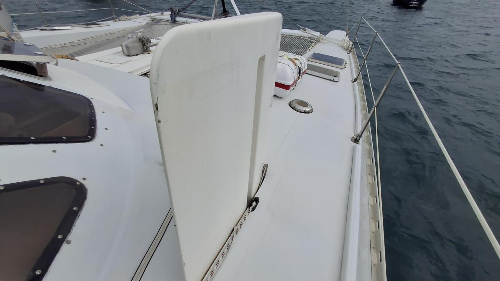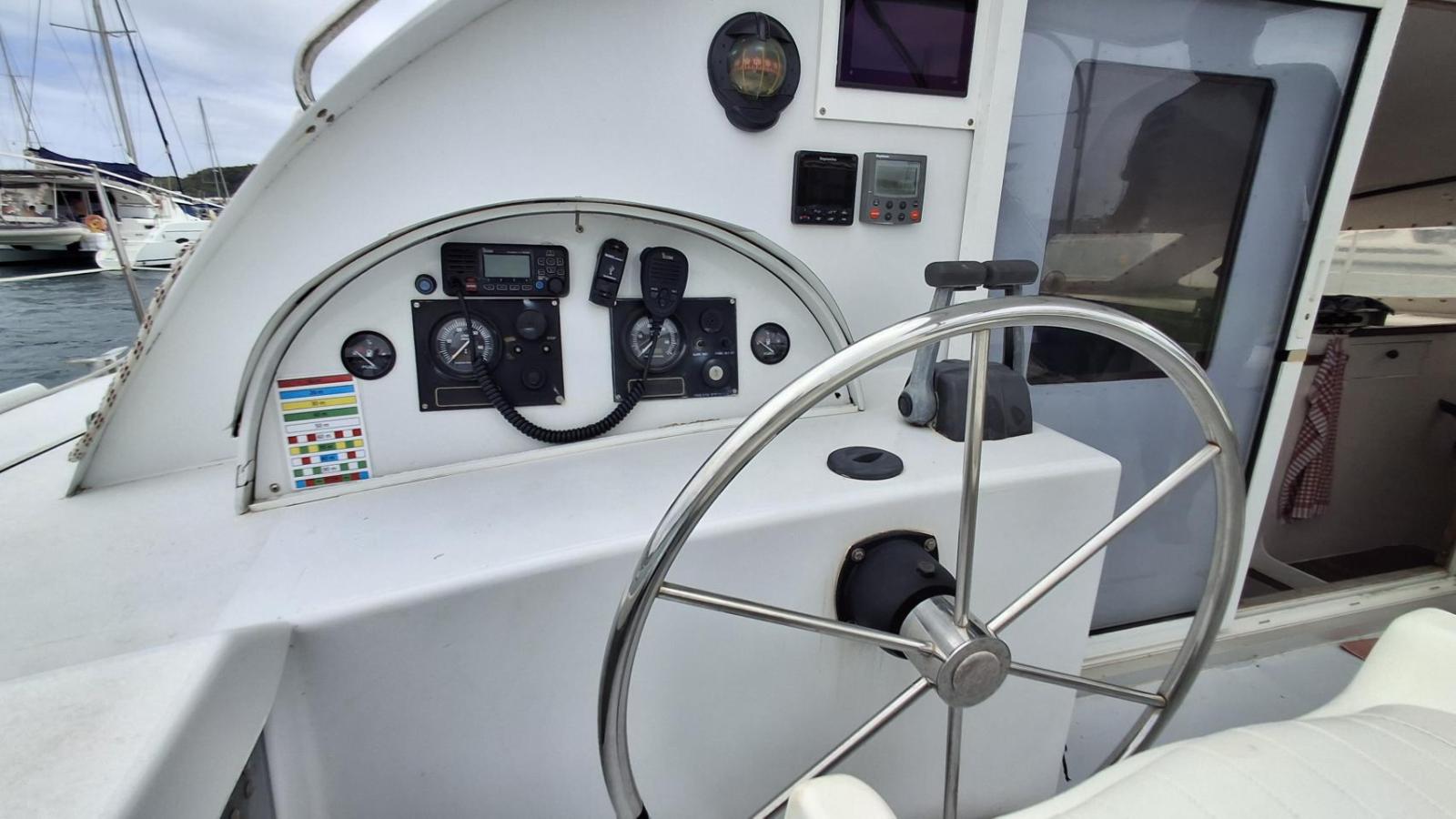 11,99 m! This Outremer is equipped with hydraulic steering wheel (dis-connectable) + two tillers. She benefitted from a full refit at the Outremer Yard, including a new mast.