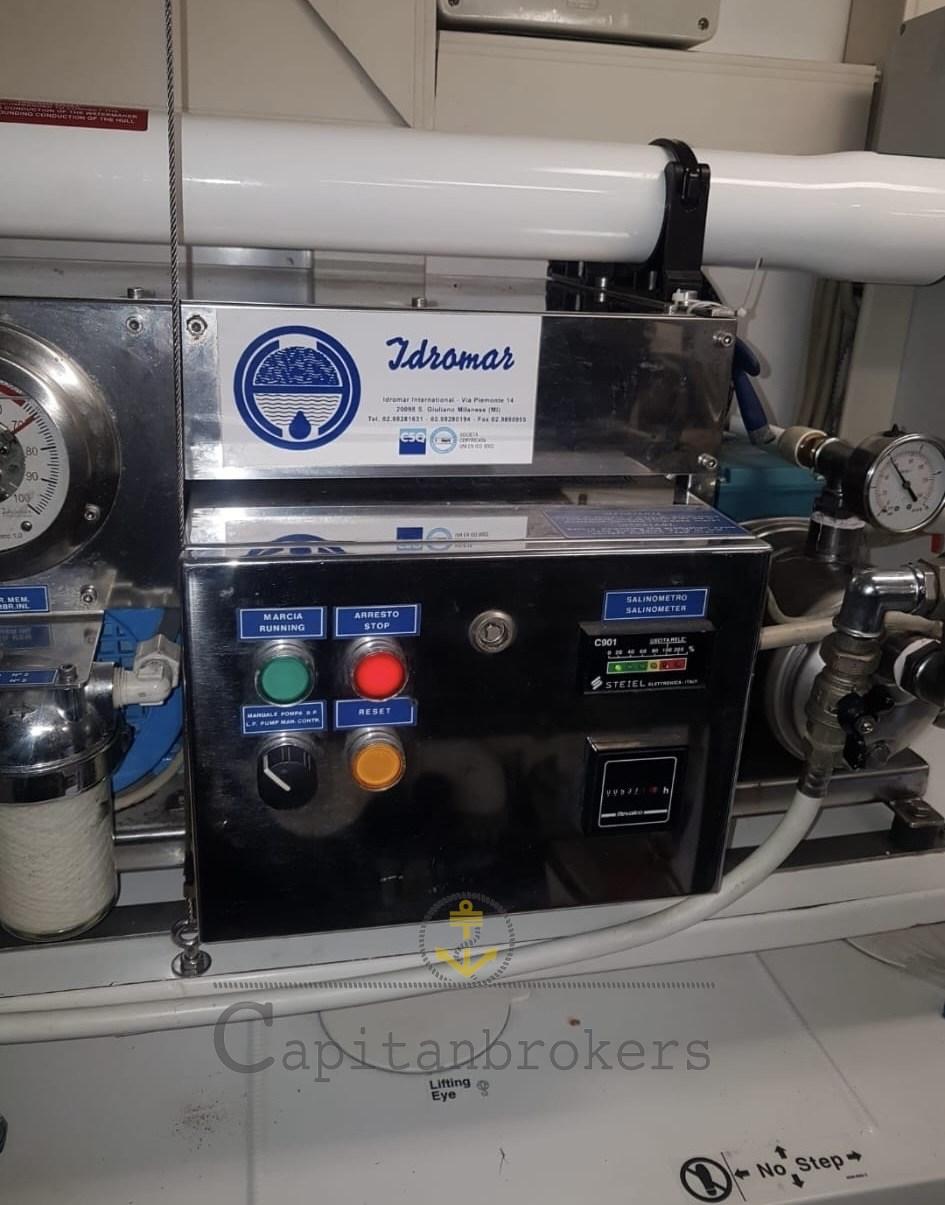 Air Conditioning (caldo/freddo con compressori 2022), Warm Water System (Impianto di riscaldamento con boiler 2020), Domotic Controller, Watermaker (Idromar 160 l/h), Waste Water Plant, 12V Outlets, 220V Outlets.