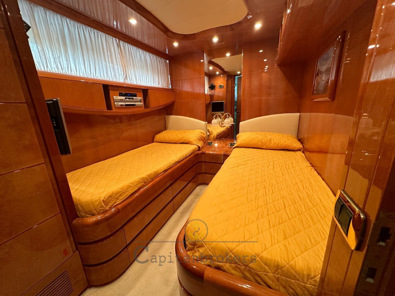 Anchor (Bruce 105 mt catena acciaio inox 2024), 2 Water pressure pump (2023), 8 Batteries, 5 Battery charger, Directional Spotlight, Tender Garage, Gangway (Idraulica), Platform (in teak), Teak Cockpit, Shorepower connector, Water harbor connector system, 2 Stern Winches, Bow Winches.