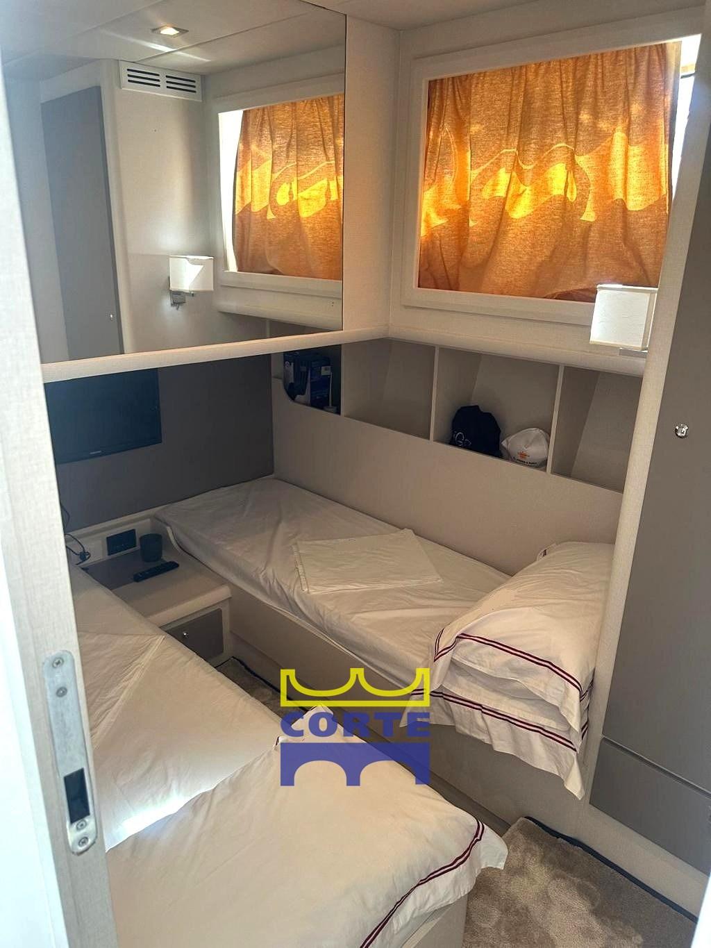 It has recently been completely renovated. The numerous extraordinary maintenance works include the complete renovation of all the interior furnishings, the complete replacement of all the internal upholstery and external cushions, the renovation of the air conditioning system, the electrical and hydraulic system, the replacement of the driving instrumentation, the replacement of the external teak, the total overhaul of both propulsion engines (zero hours) and the complete restoration of the engine room.