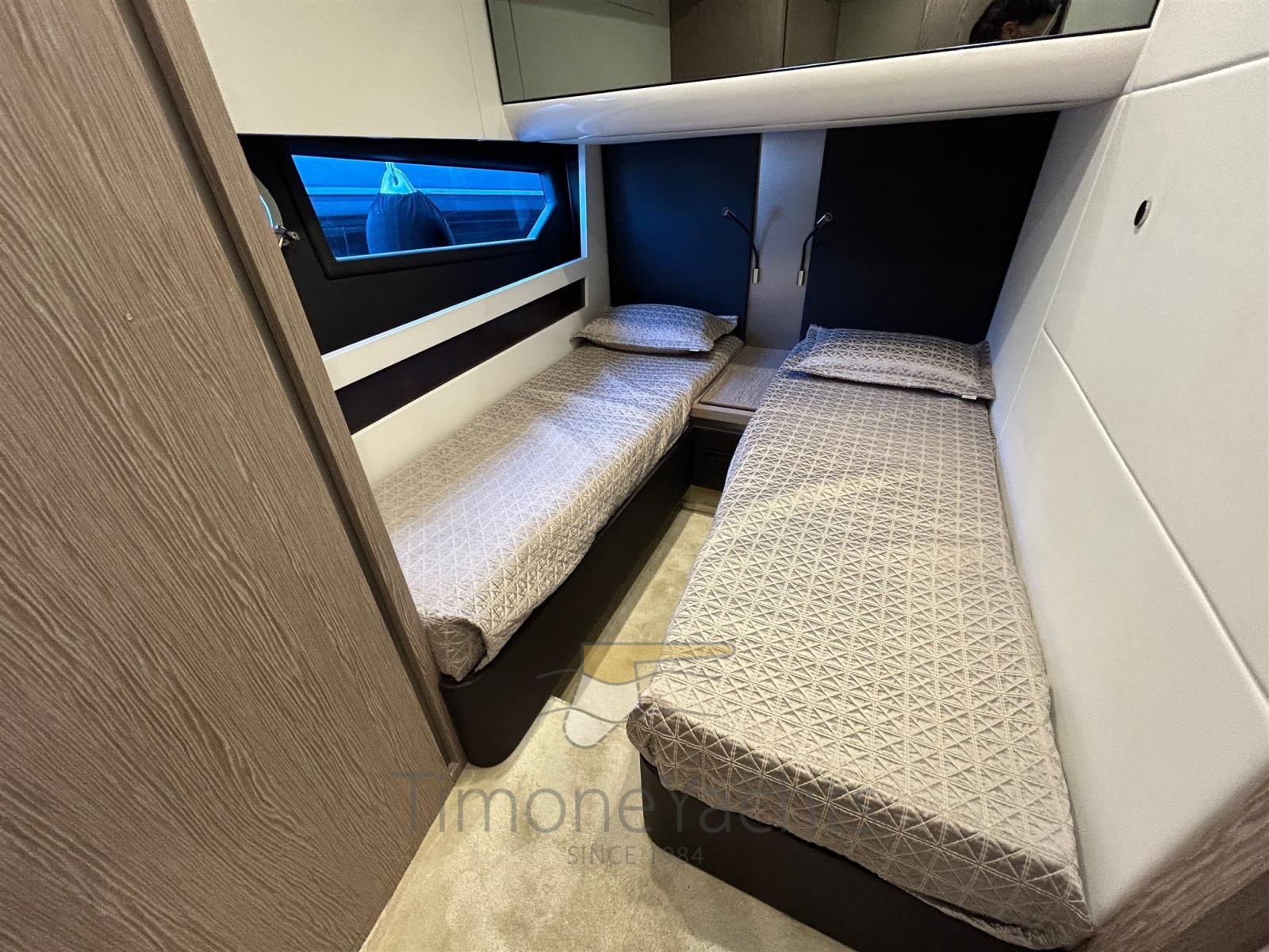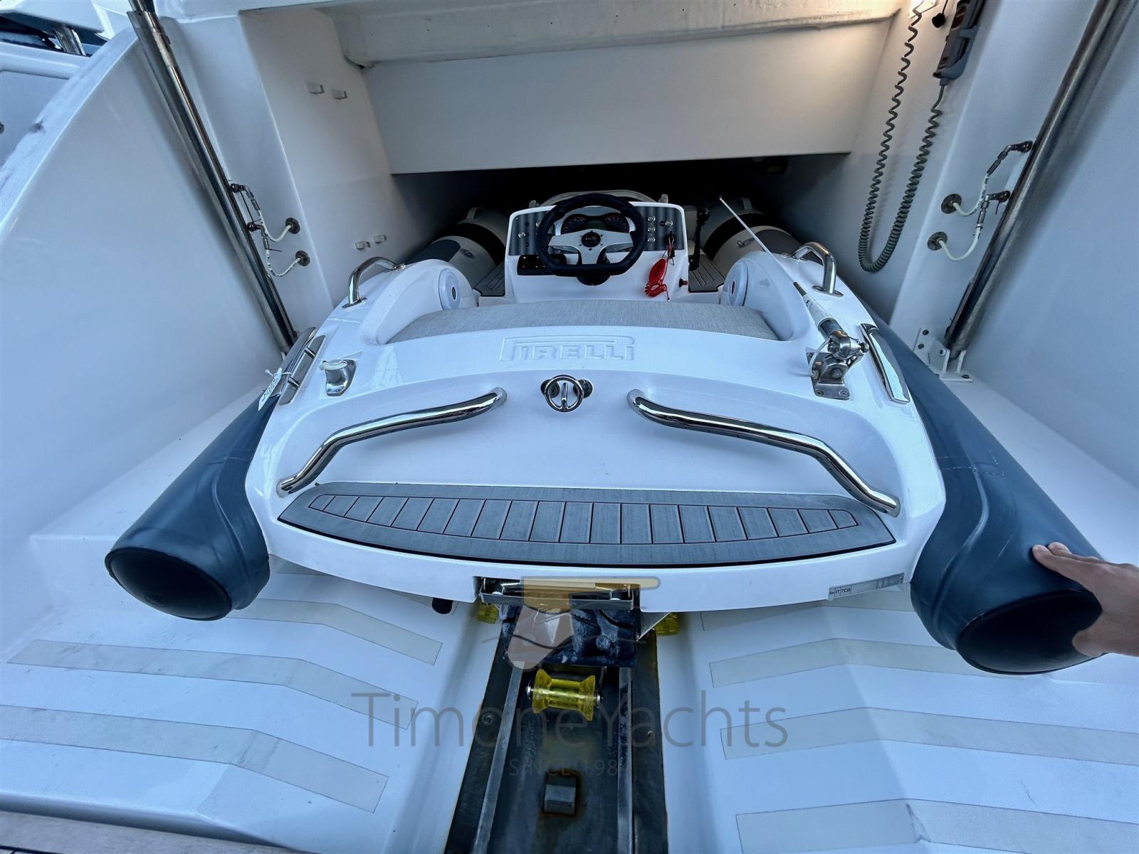 Fume/Gas Detector, Engine Alarm, Bilge Alarm, Auto Dynamic Trim Interceptor, Water pressure pump, Auto-Trim, Teak Side Decks, Deck Shower, Directional Spotlight, Electric Flaps, Tender Garage, Hard top, Flaps Indicators, Anchor Chain Washdown, Washbasin in the cockpit, Courtesy Lights, Underwater lights, Gangway, Platform, Entry door, Teak Cockpit, Shorepower connector, Stabilizers (Seakeeper 9), cockpit table, Living Room Foldable Table, Tender (Pirellii 330 jet (year 2021) [43hrs on 14.01.26]), Horn, Stern Winches, Bow Winches.