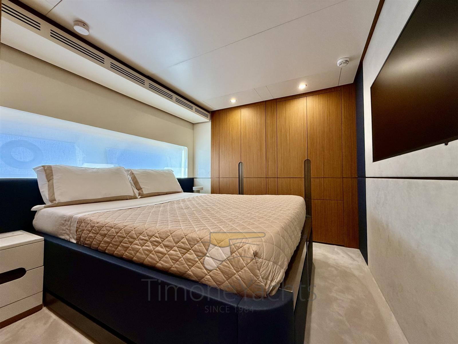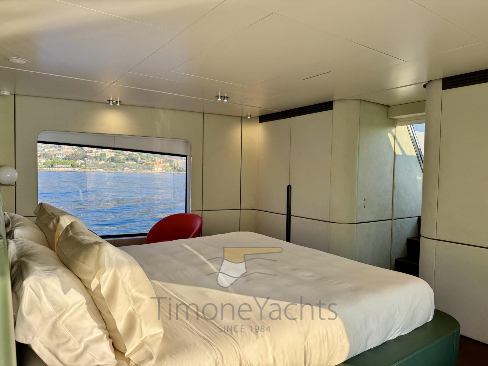Three stabilizers: Seakeeper gyro, fins (underway + zero speed).. and the third one? That's in the master cabin where, well yes, the master bed is anti-rolling stabilized too.