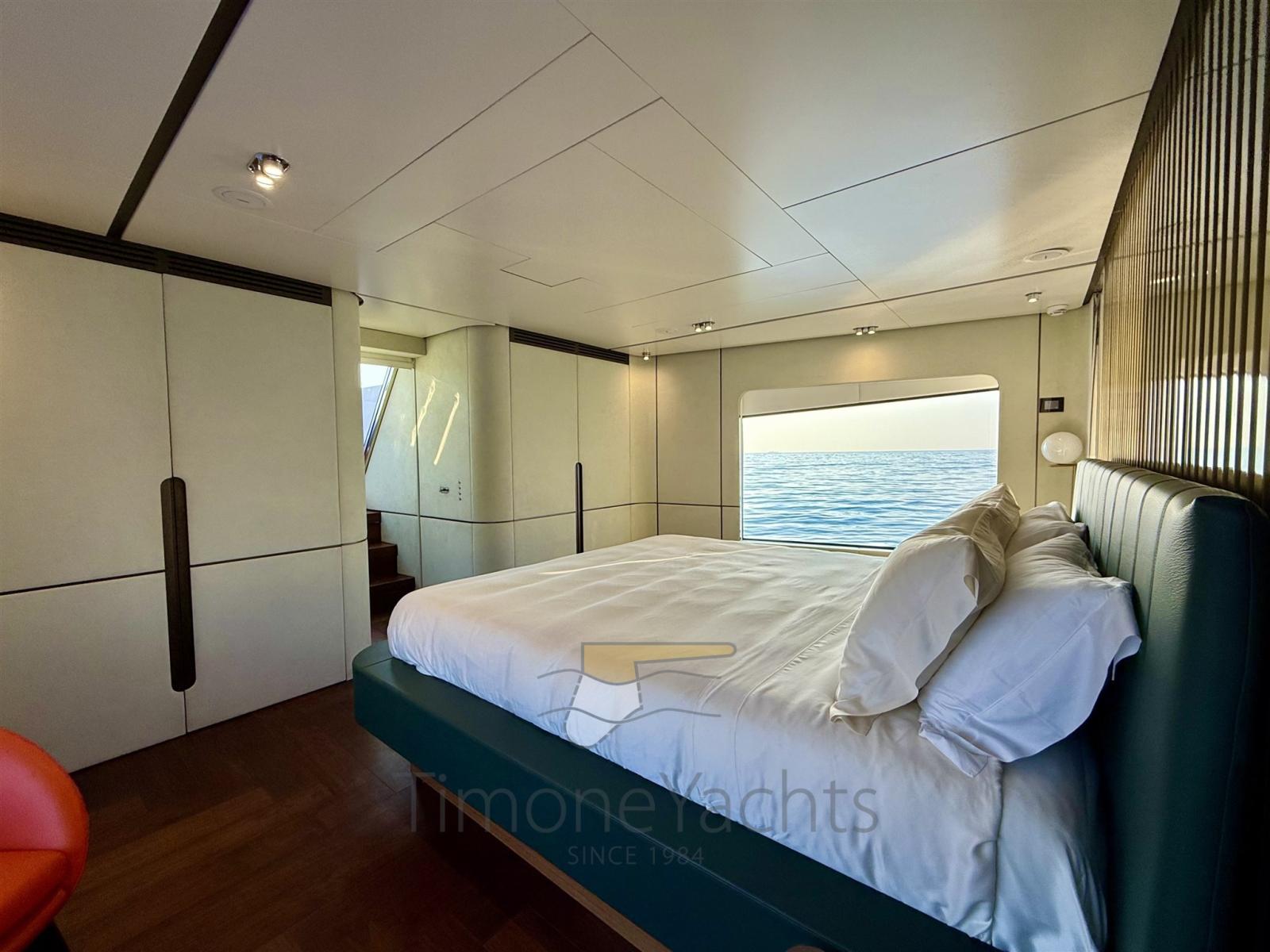 The main salon then is an overwater villa itself, with windows that big it will be hard to distinguish the insideout. The enormous salon has two niches amidship, those will favour your guests' boarding in style while alongside at port. Upfront the main deck there's clearly the master apartment where, well yes, there's an electrically openable glass door that gets you out on the front deck. Not to consider the large entrance corridor the master area starts wth.