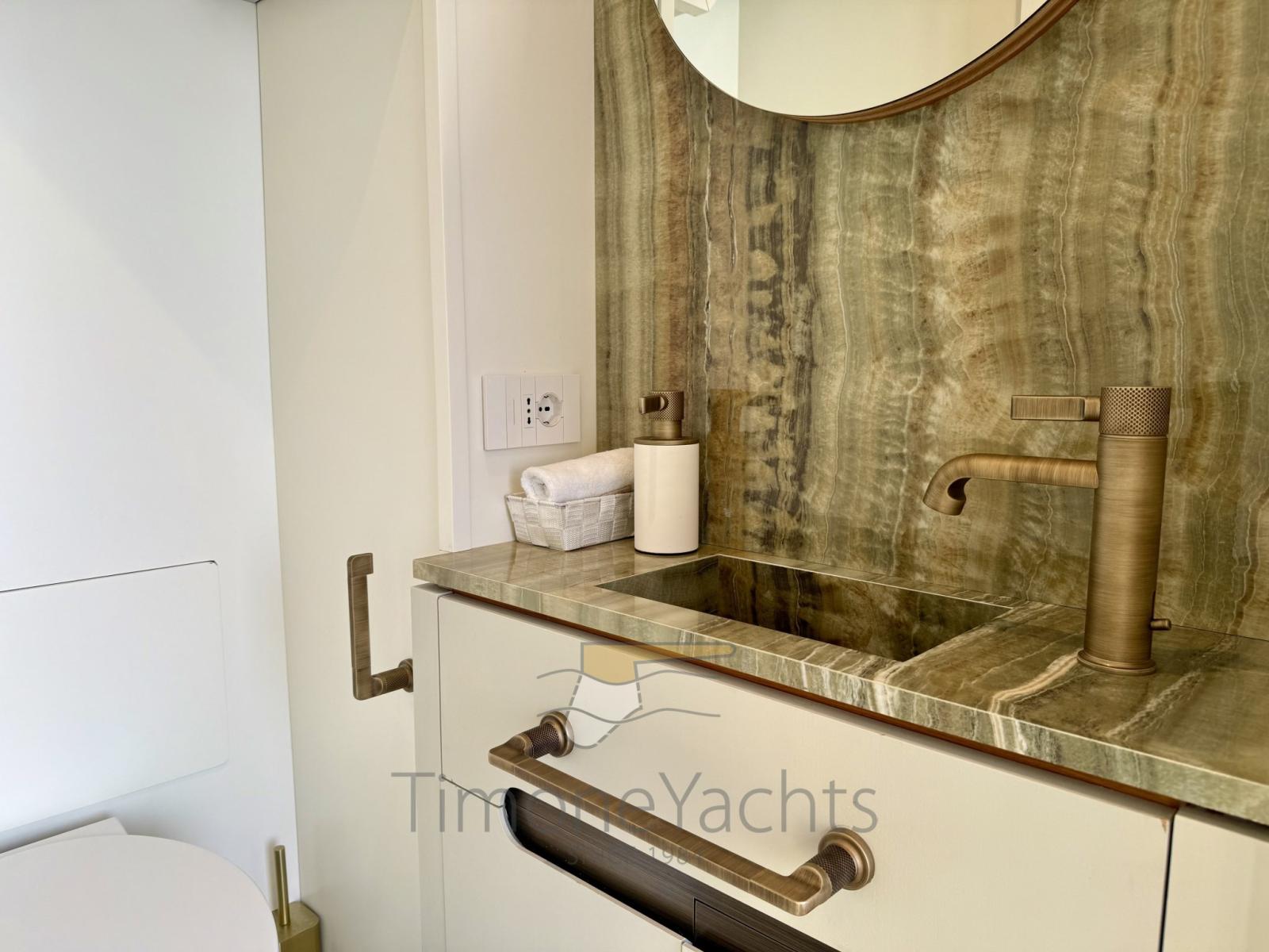 Each of the remaining 3 guests cabin, down the lower deck, could easily act as second master cabin, either for space either for refined materials.