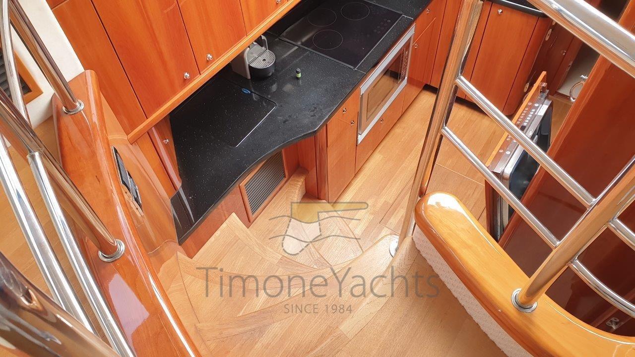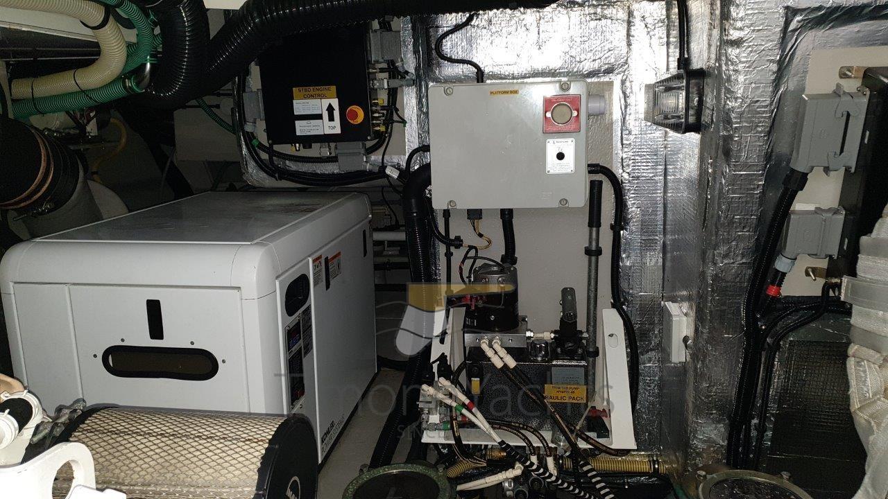 Special Colour (Blu scuro carena), Directional Spotlight, Hydraulic Flaps, Fire Extinguishing System, Flaps Indicators, Anchor Chain Washdown, Courtesy Lights, Gangway, Platform, Deck Wash Pump, Teak deck, Teak Cockpit, Shorepower connector, cockpit table, Stern Winches, Bow Winches.