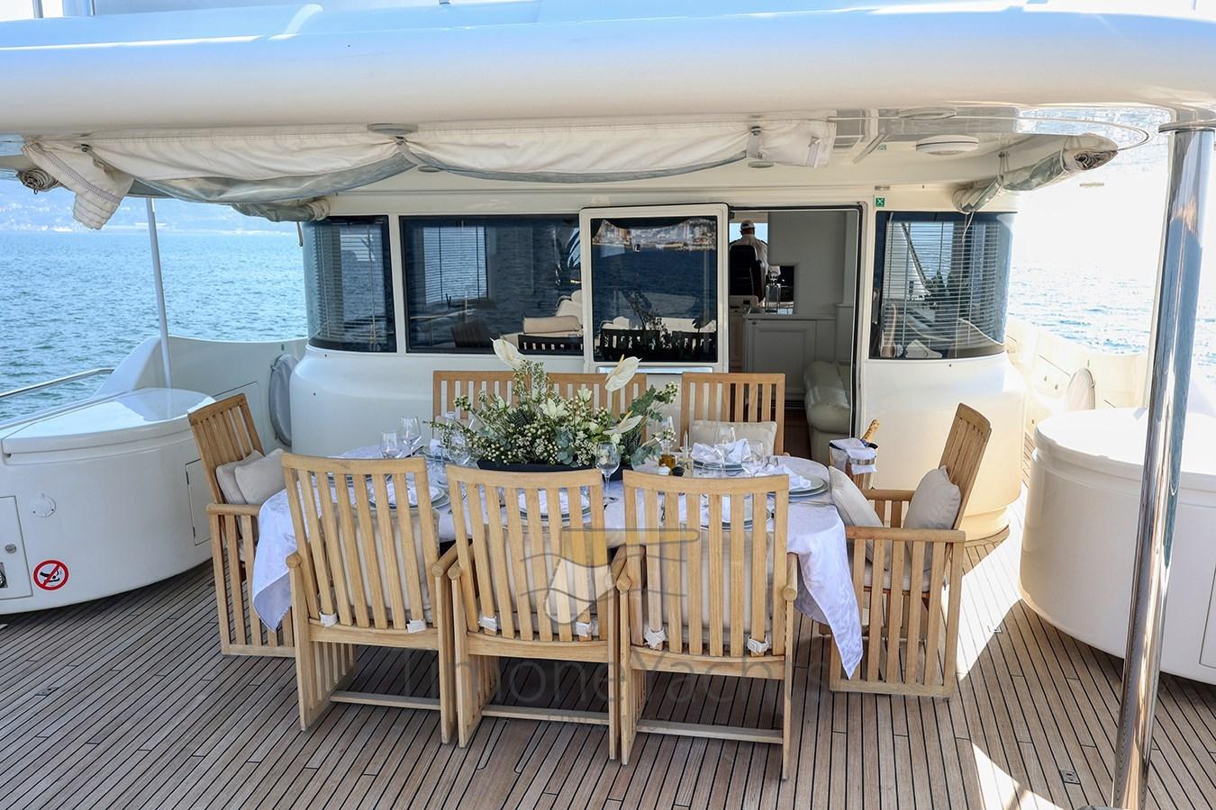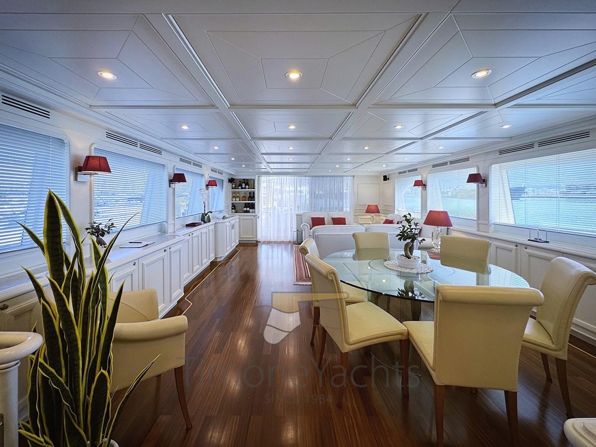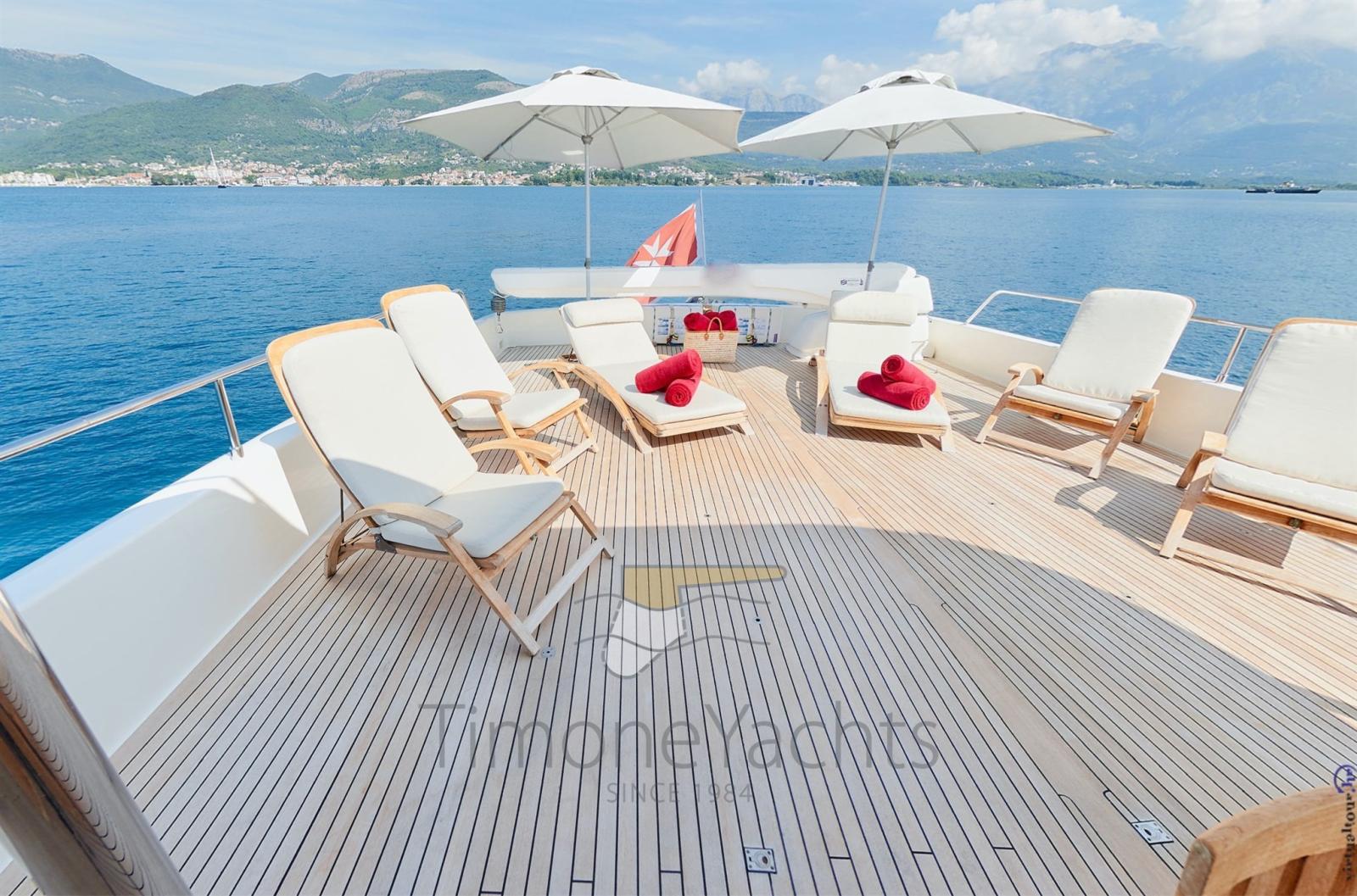 Teak Side Decks, Deck Shower, Headlights fixed on the stem, Directional Spotlight, Hydraulic Flaps, Tender Garage, Davits for tender on fly, Fire Extinguishing System, Flaps Indicators, Anchor Chain Washdown, Courtesy Lights, Underwater lights, Jet-Ski (Seadoo 60hp (year 2023)), Gangway, Side door, Teak Cockpit, Shorepower connector, Water harbor connector system, Waste Water Purifier System (Hamann), 4 Stabilizers (nr.3 ARG gyro + fins), cockpit table, Tender (Saxador 200 sport (year 2023)), Horn, 2 Stern Winches, 2 Bow Winches.